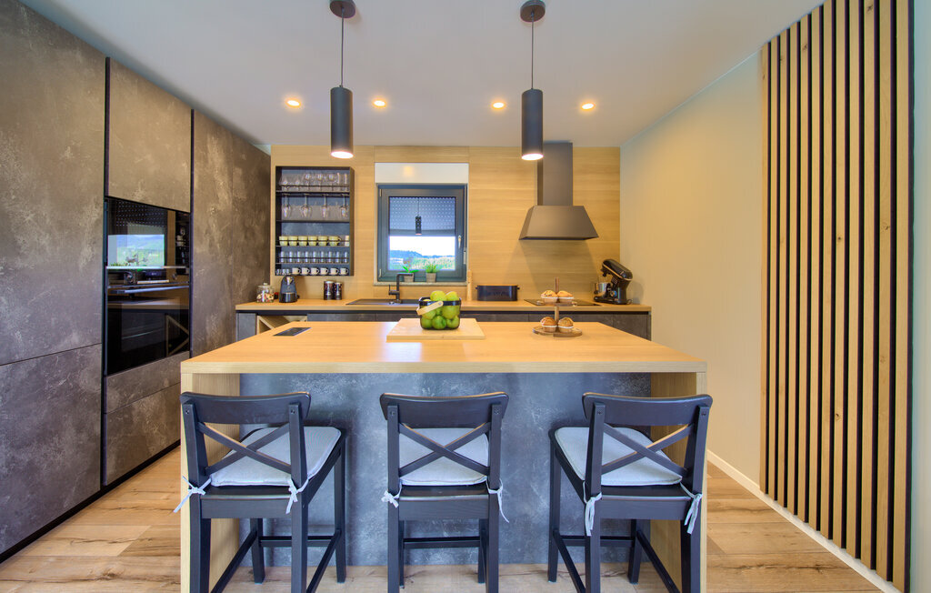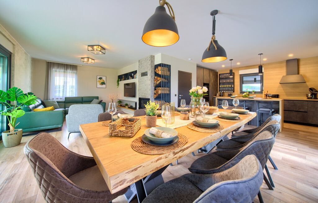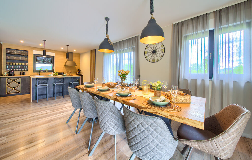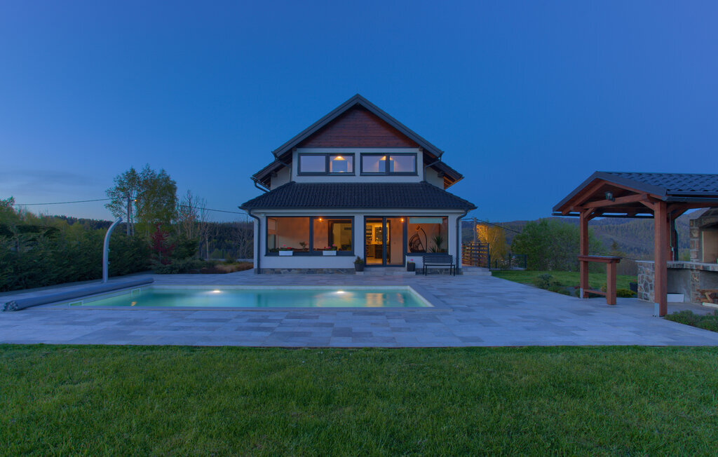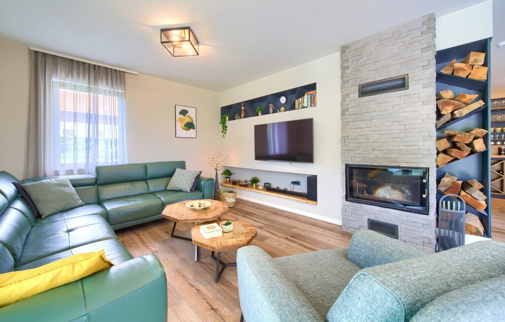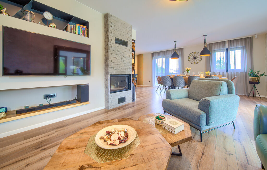 Votre maison de vacances luxueuse et spacieuse à Fuzine vous accueille, vous et votre famille, pour des vacances dans le plus grand confort. Le salon moderne avec ses sièges confortables vous invite à vous détendre, tandis que le poêle à bois crée une atmosphère chaleureuse et accueillante. Laissez le stress quotidien derrière vous et profitez de soirées conviviales dans la salle à manger spacieuse. Cuisinez dans la cuisine moderne, qui offre tout ce dont vous avez besoin pour réaliser des chefs-d'œuvre culinaires. Vous pourrez déguster les plats préparés ensemble autour de la grande table à manger qui peut accueillir tout le monde.