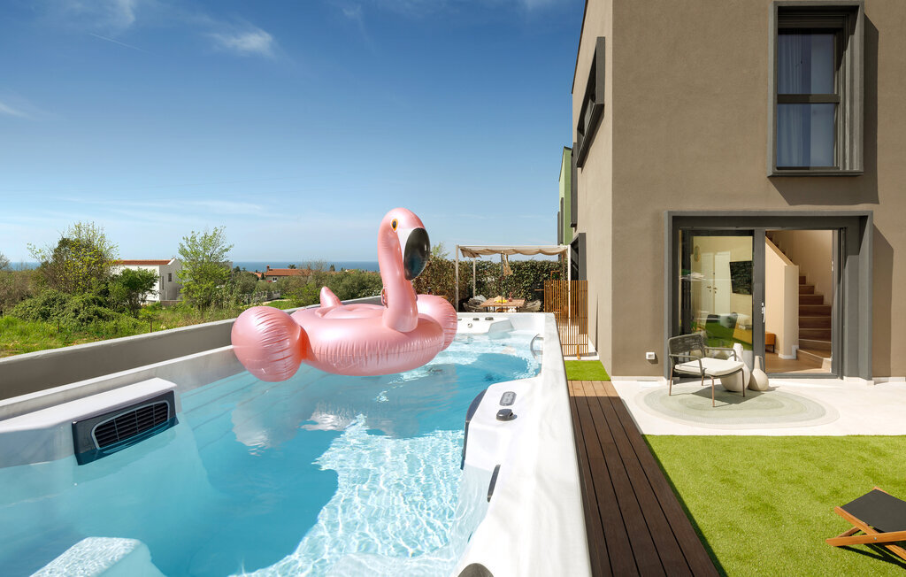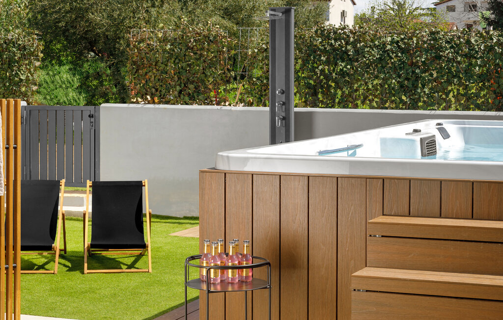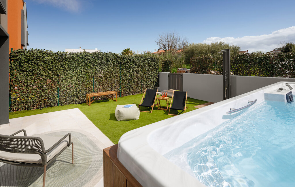 Bien-être à l'extérieur : Location de vacances disposant de chaises-longues et d'un ou plusieurs équipements tels que piscine extérieure, jacuzzi extérieur, lit à baldaquin de jardin etc...