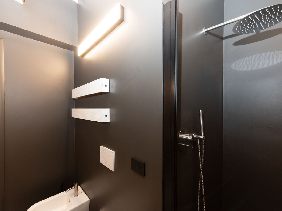 Cuisine ouverte (four, lave-vaisselle, 4 plaques à induction, grille-pain, bouilloire électrique, cafetière électrique).