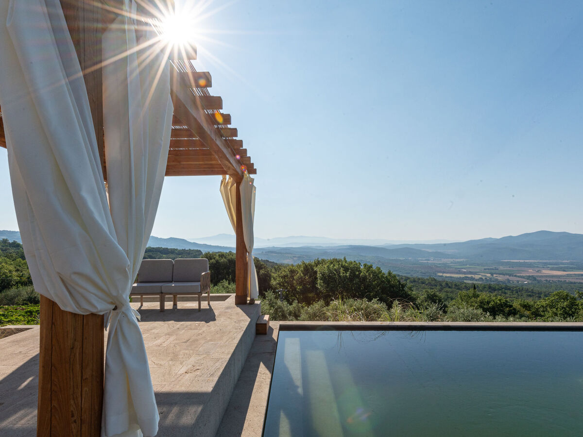Superbe vue panoramique sur la vallée, l'océan et Isola del Giglio.