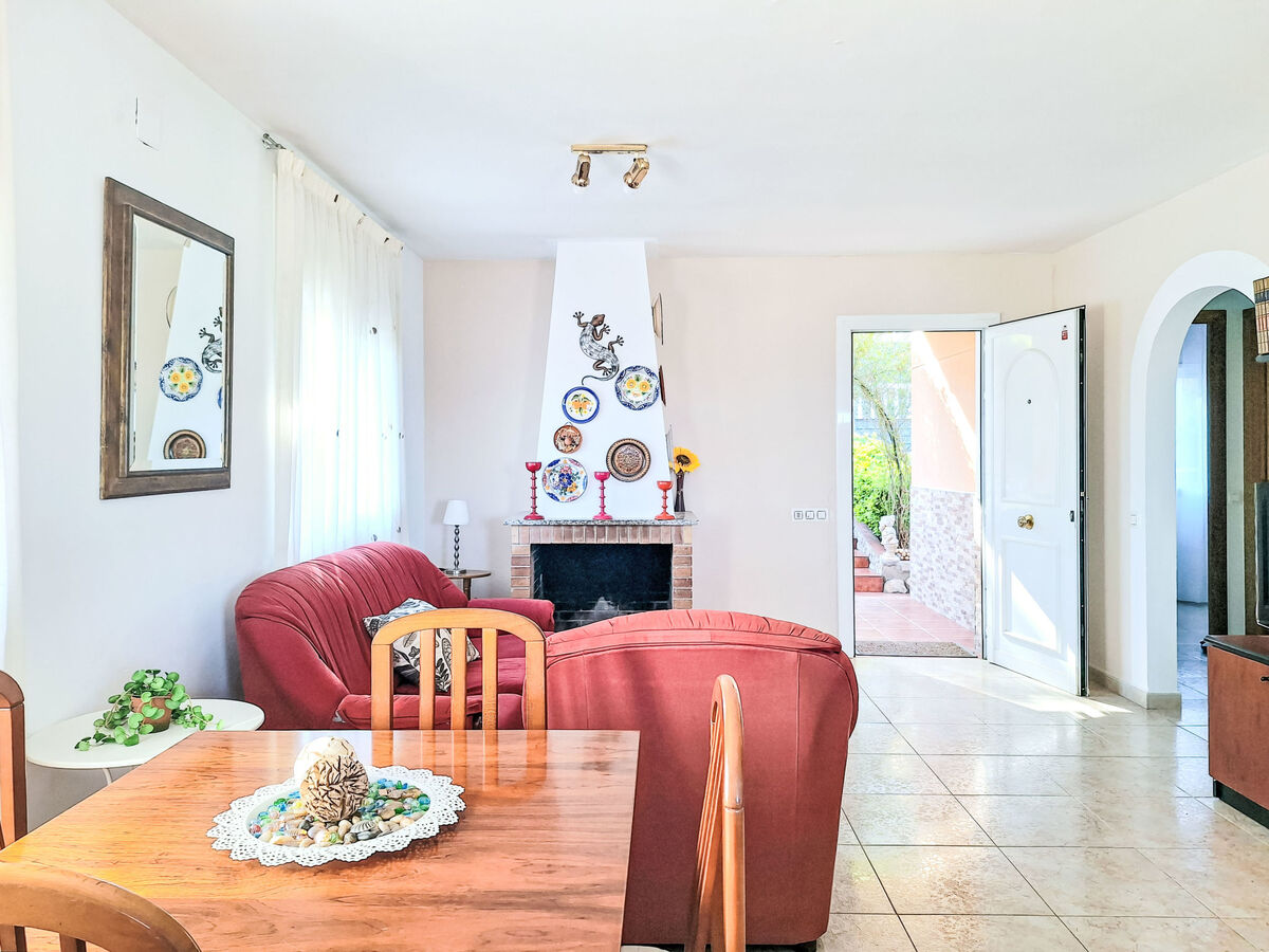Aménagement fonctionnel et confortable: séjour/salle à manger avec cheminée (uniquement à titre de décoration), table pour les repas et Télévision numérique.