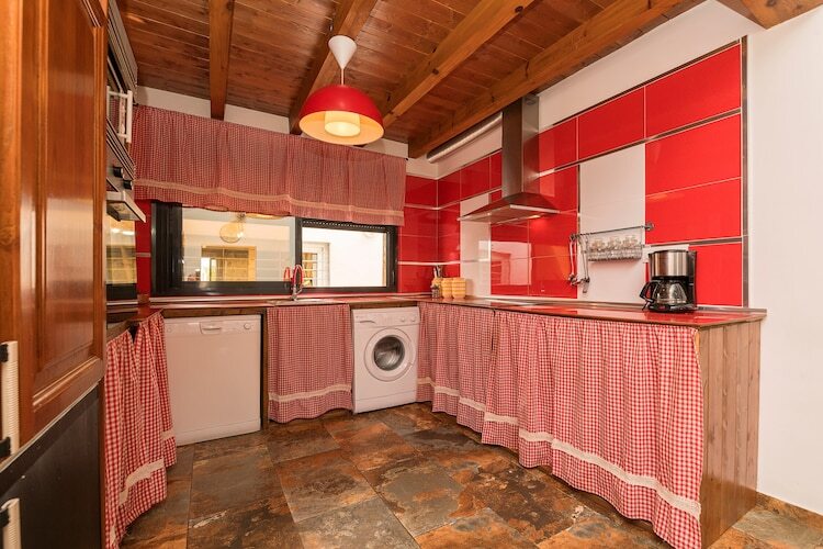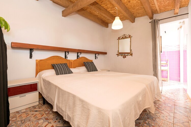 En el interior, el salón cuenta con Smart TV y conduce a la zona de comedor desde donde se accede al patio trasero. A continuación encuentran la cocina abierta, totalmente equipada y con vitrocerámica, que proporciona un espacio cómodo para cocinar sus platos favoritos. La lavadora está ubicada en la cocina y en la casa también hay plancha y tabla para planchar, ofreciendo todas las comodidades del hogar. Por otro lado, la casa dispone de dos dormitorios, ambos con cama de matrimonio y armario. Hay un baño completo con ducha para todo el alojamiento. Tres ventiladores y cuna y trona si viajan con su bebé completan el equipamiento.