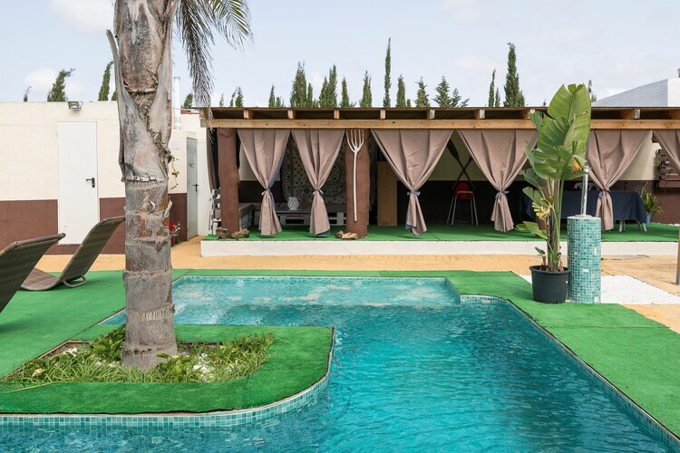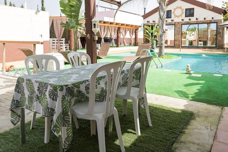 La zona exterior goza de gran privacidad y ofrece varios rincones donde relajarse al aire libre. La gran protagonista del patio trasero es la piscina privada de cloro, que tiene 6 metros de largo y 4 metros de ancho, mientras que su profundidad varÃa de 1.5 metros hasta 2 metros. Además, hay una ducha exterior para enjuagarse después de un baño refrescante. La zona la completan dos porches, el primero con barbacoa fija y zona de comedor exterior y el segundo a modo de chill out. Los más pequeños también encuentra su lugar en la zona habilitada para juegos. La propiedad se encuentra vallada y tiene vecinos cercanos.