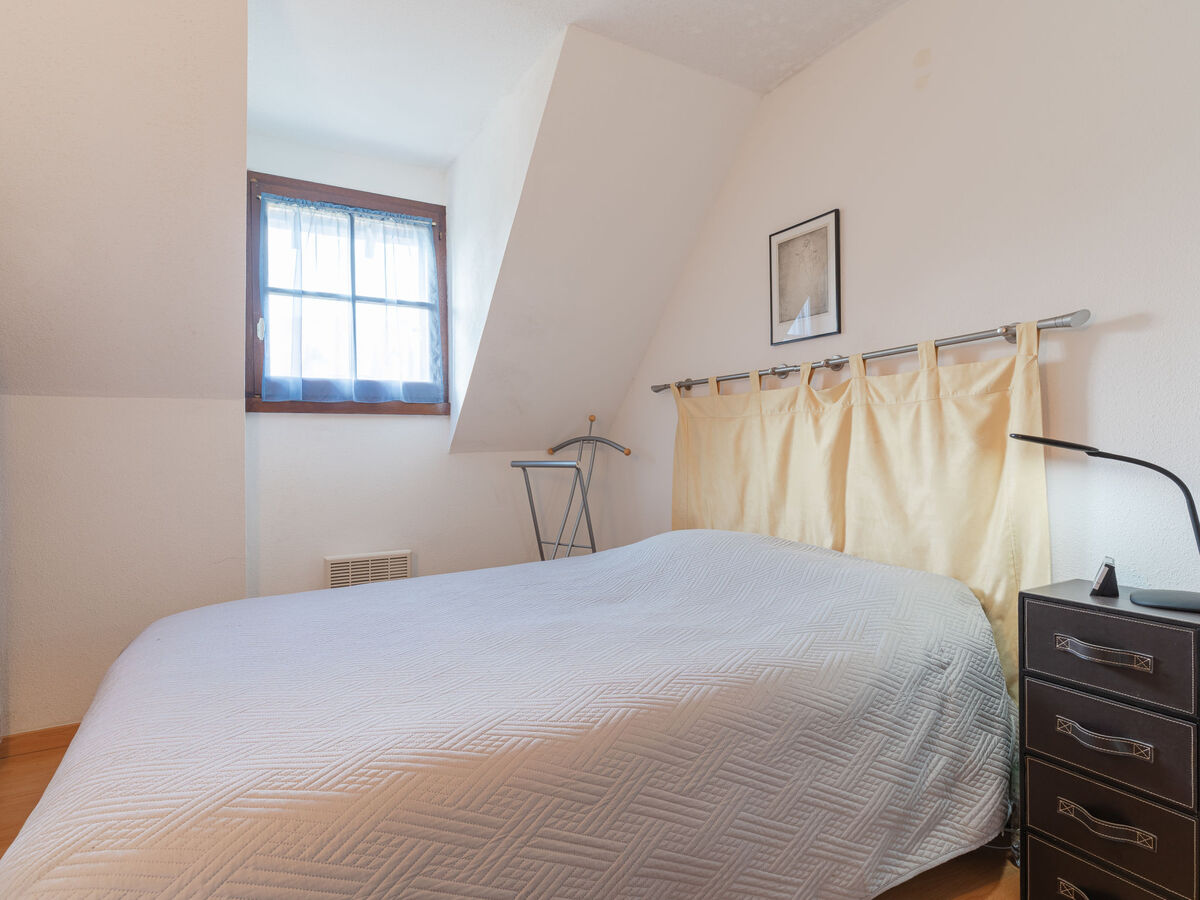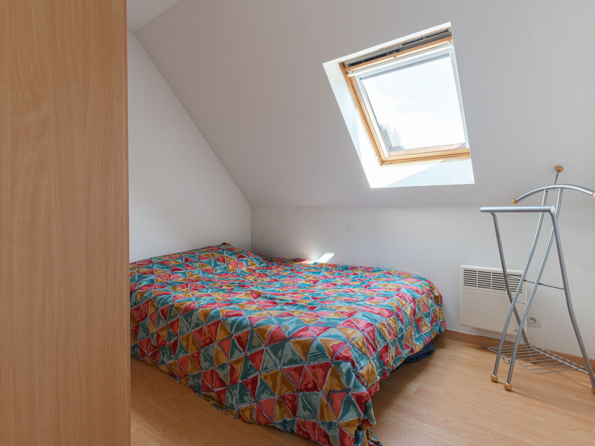 À l'étage supérieur: 1 chambre avec 1 divan-lit double (140 cm, longueur 190 cm).