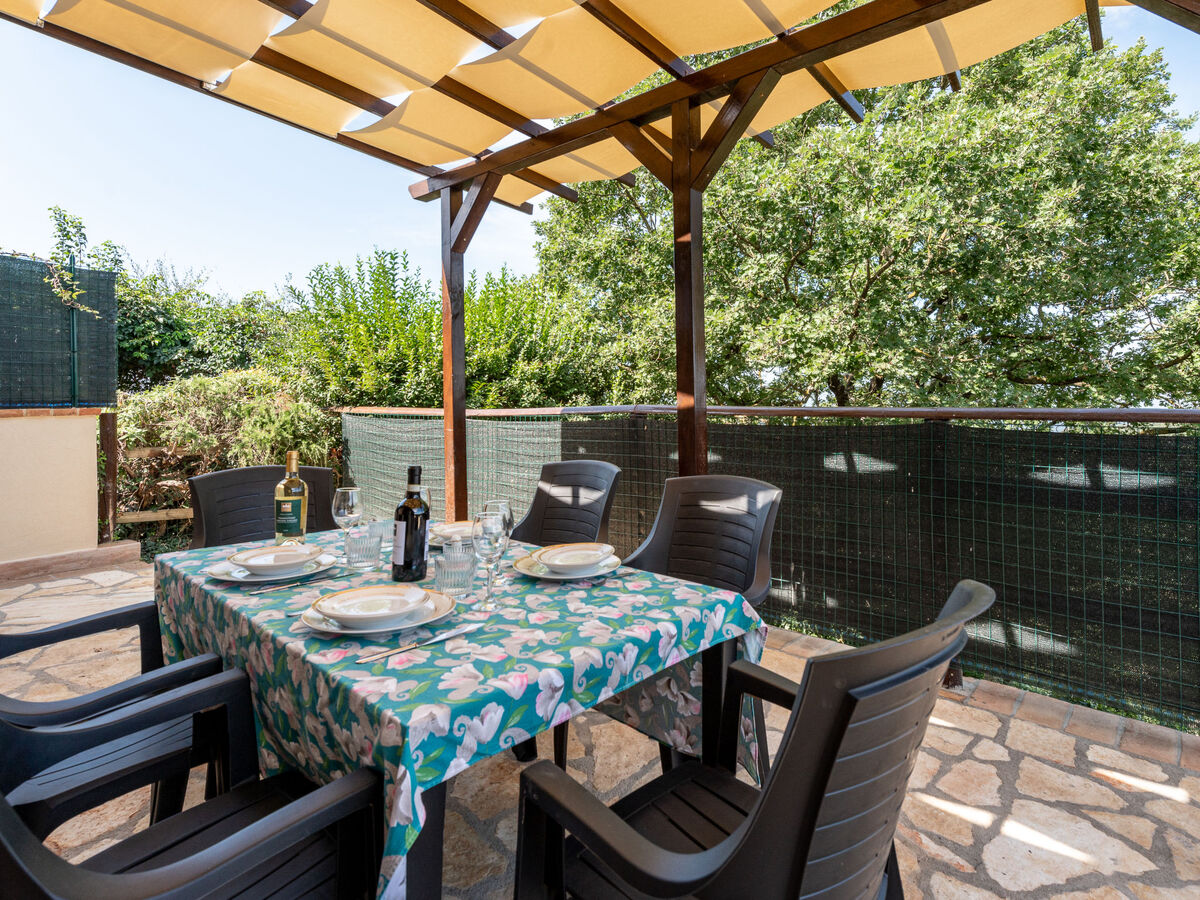 A usage privé: jardin (clôturé) avec pelouse et plantes, piscine (hors sol) ronde (360 m diamètre, profondeur 120 - 120 cm, disponibilité saisonnière: 15.Mai.