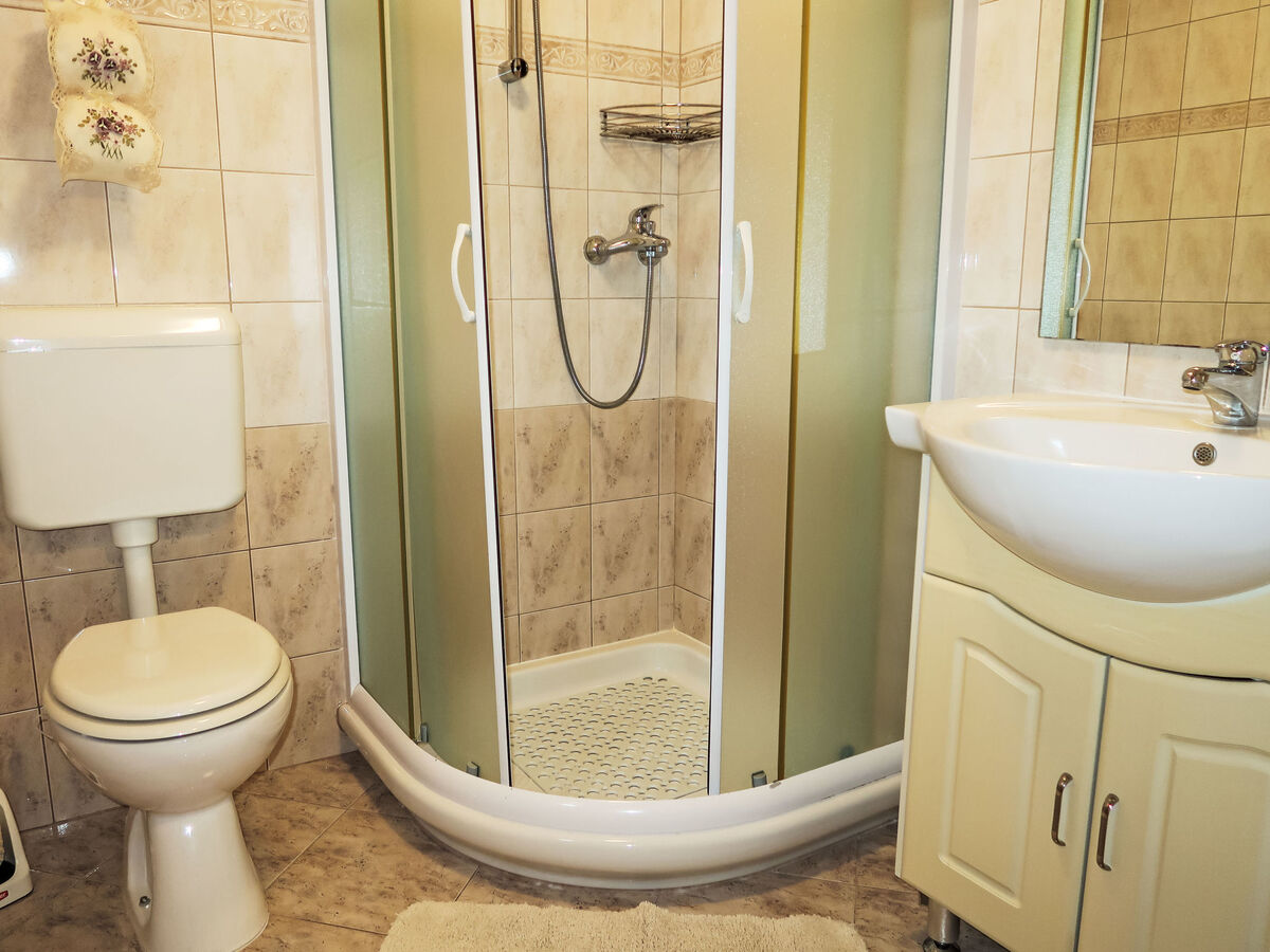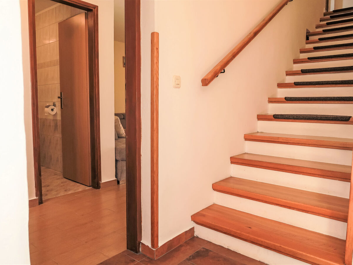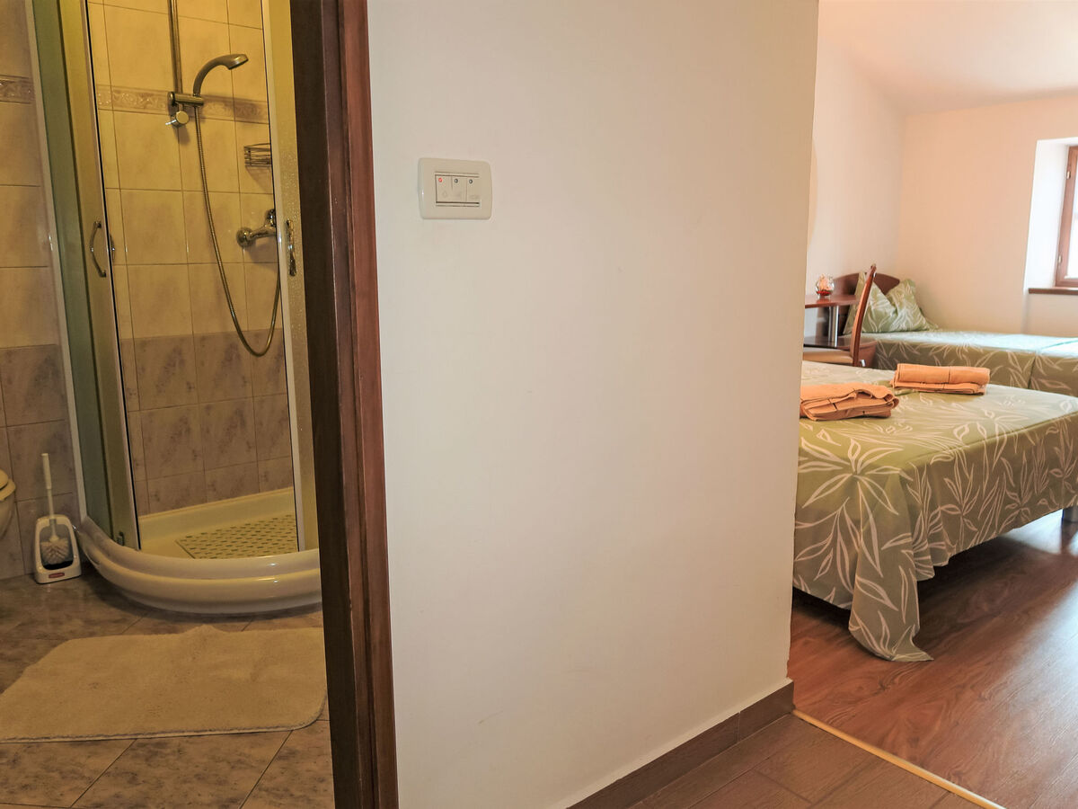 À l'étage supérieur: 2 chambres, chaque chambre avec: 1 lit (90 cm, longueur 200 cm), 1 grand-lit (160 cm, longueur 200 cm), douche/WC et air-conditionné.