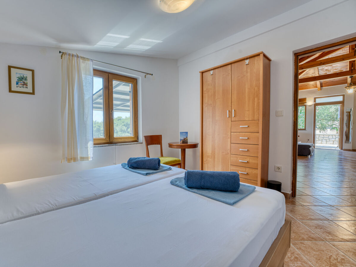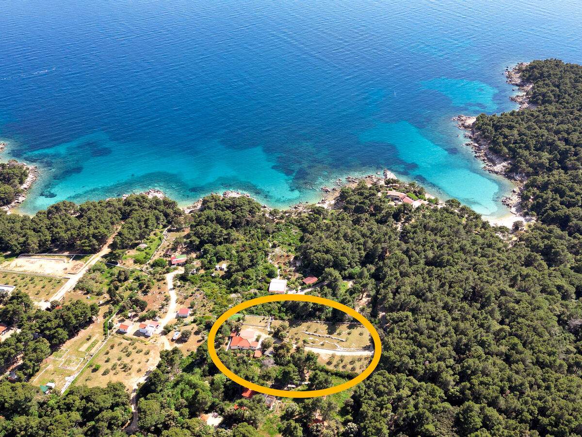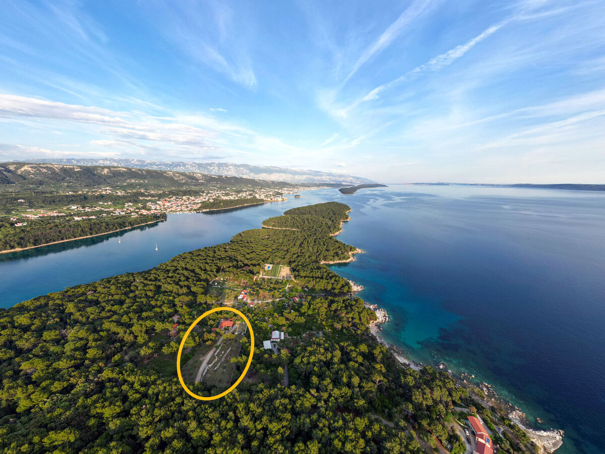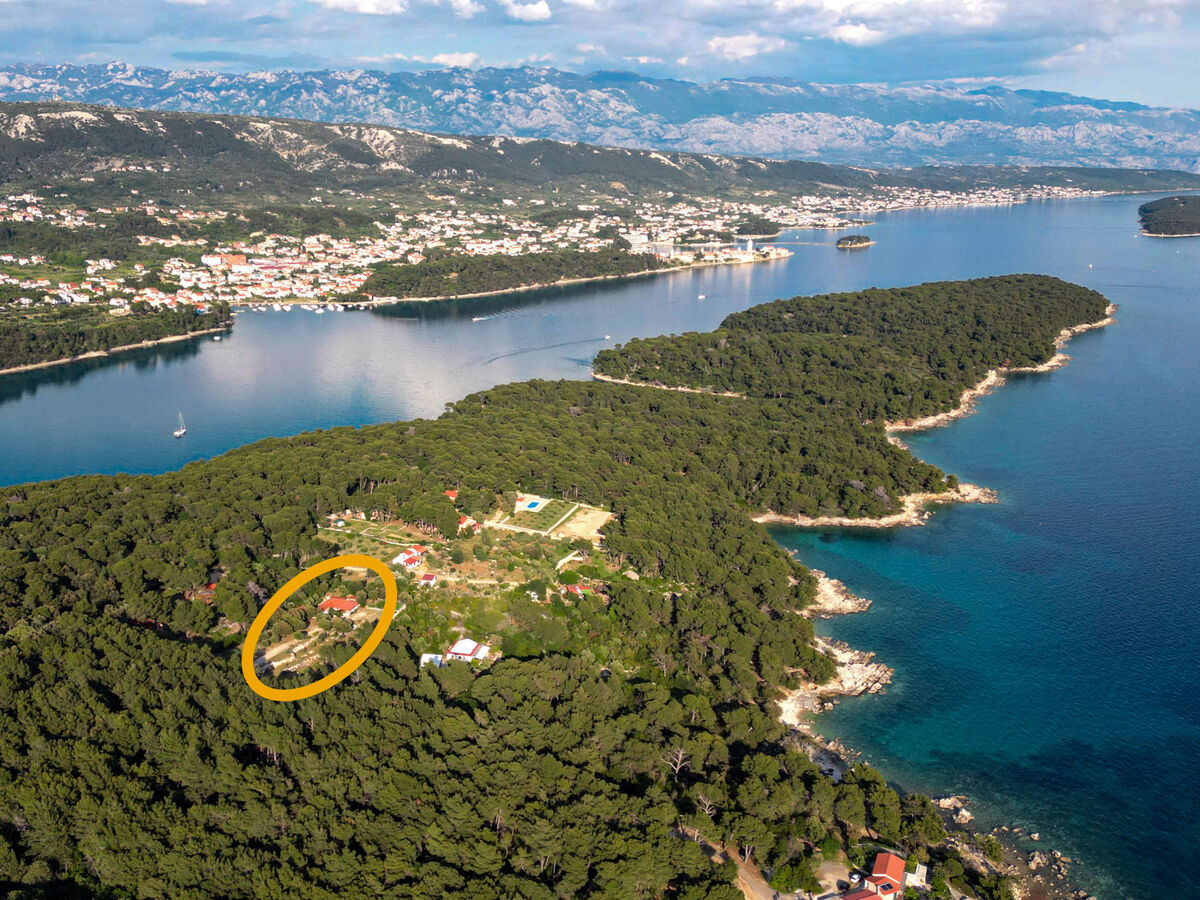À 5 km du centre de Rab, situation tranquille, ensoleillée, à 200 m de la mer, à 450 m de la plage, dans une impasse.