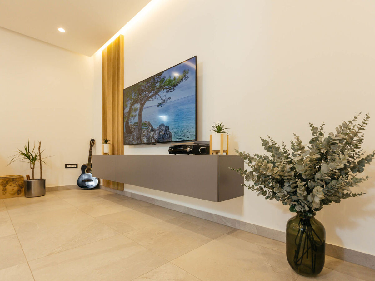 Aménagement agréable et moderne: séjour/salle à manger 40 m2 avec 1 divan-lit (140 cm, longueur 200 cm), TV (satellite), écran plat et air-conditionné.