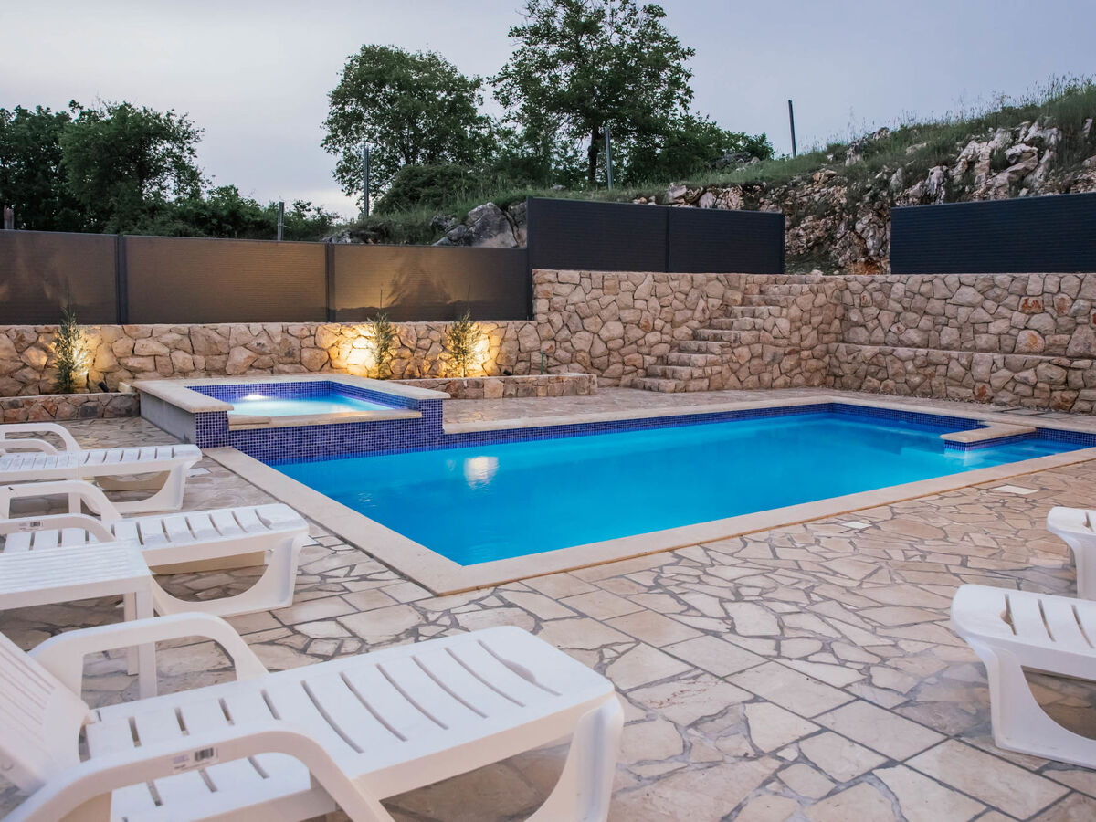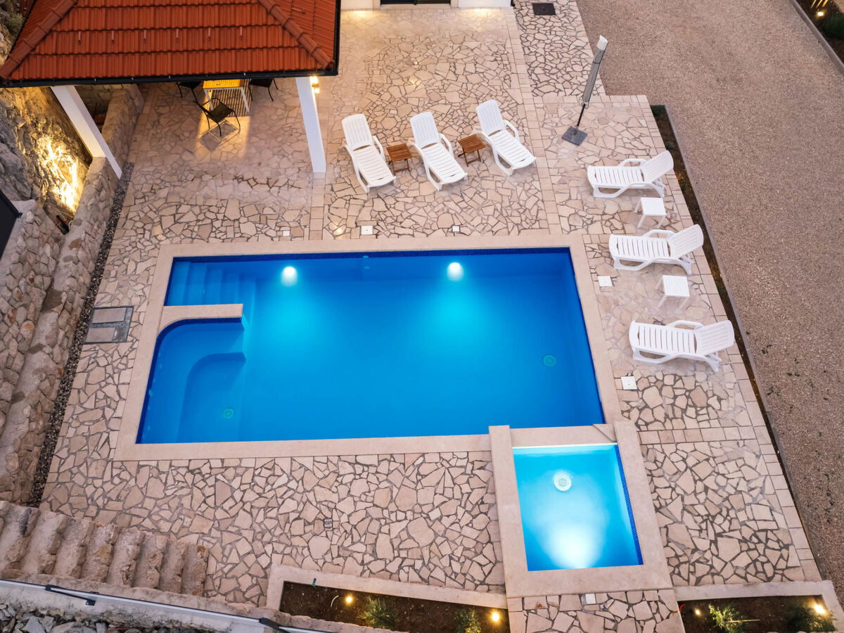 A usage privé: terrain 700 m2 (clôturé), piscine (8 x 4 m, profondeur 150 cm, disponibilité saisonnière: 01.Mai.