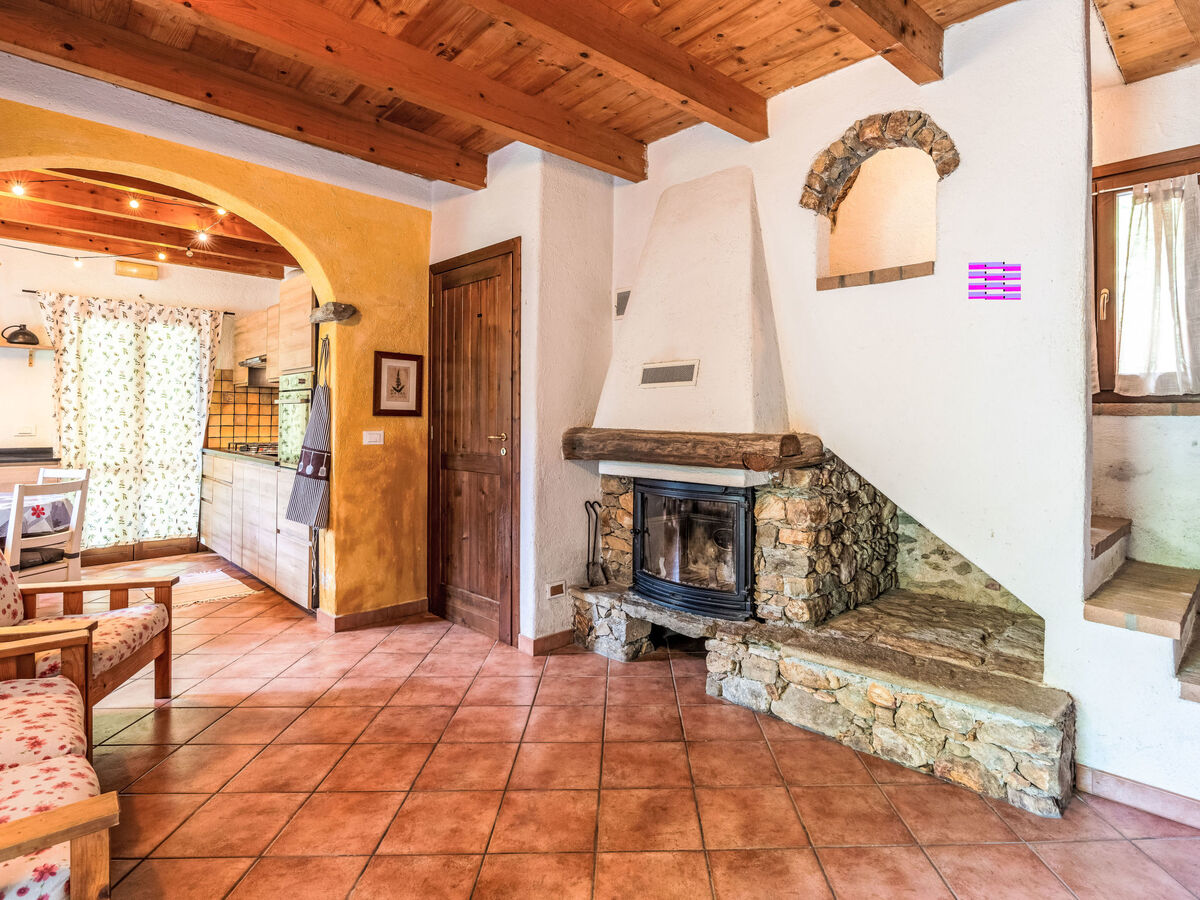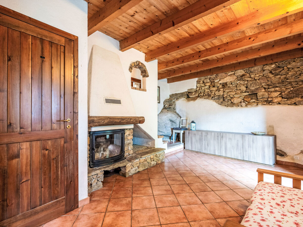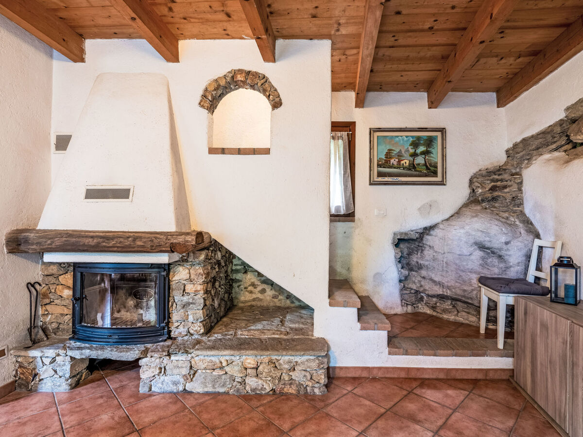 Clair, aménagement plaisant et avec beaucoup de bois: séjour avec cheminée et TV.