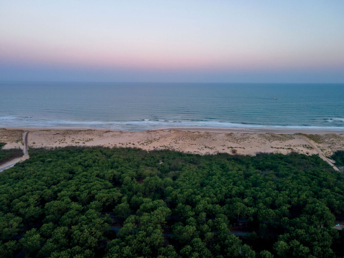 À 2 km du centre de Maubuisson, à 5 km du centre de Carcans-Plage, à 14 km du centre de Lacanau-Océan, situation tranquille, à 5.5 km de la mer, à 2 km du lac, à 2 km de la plage, dans la forêt.