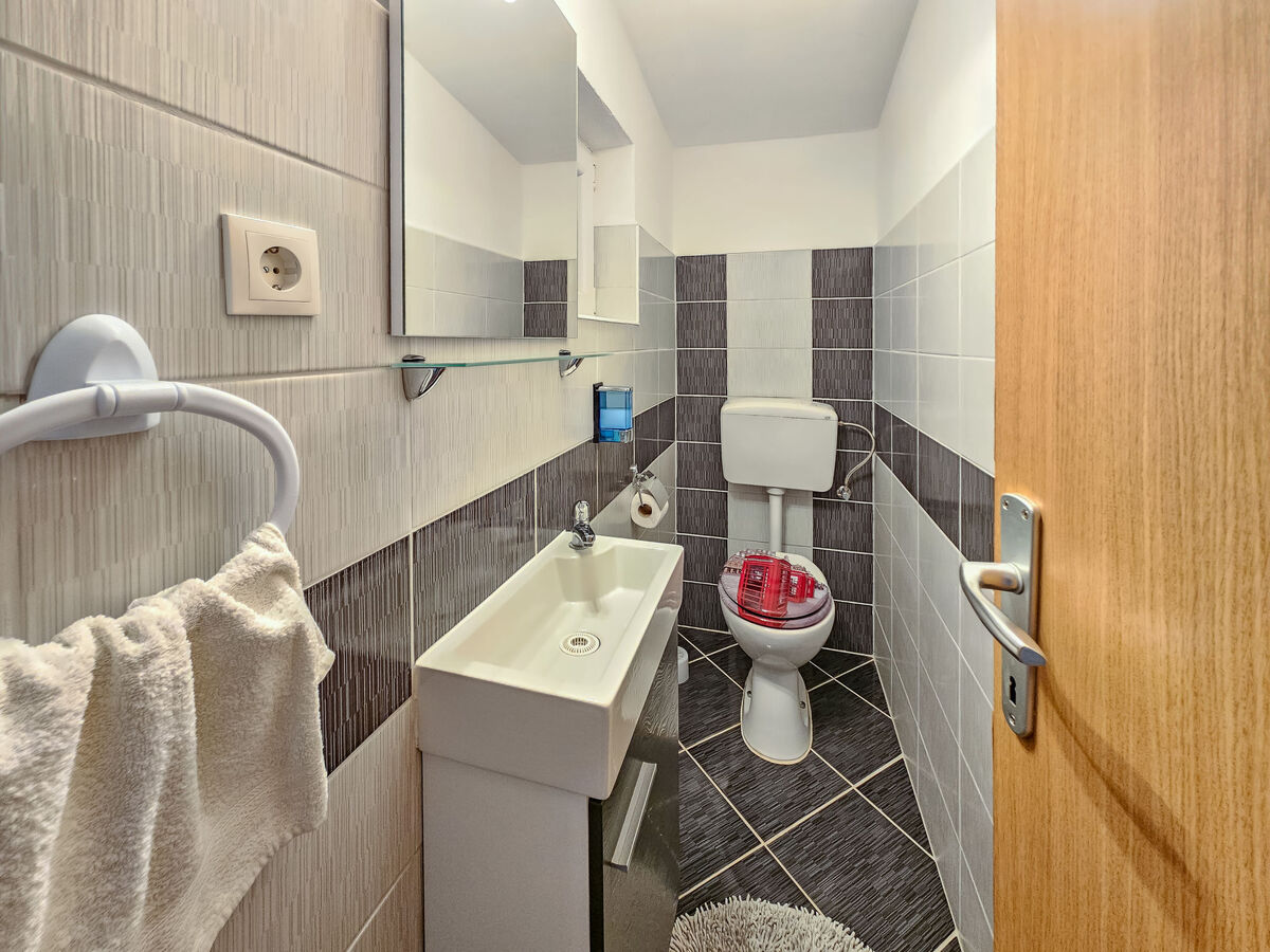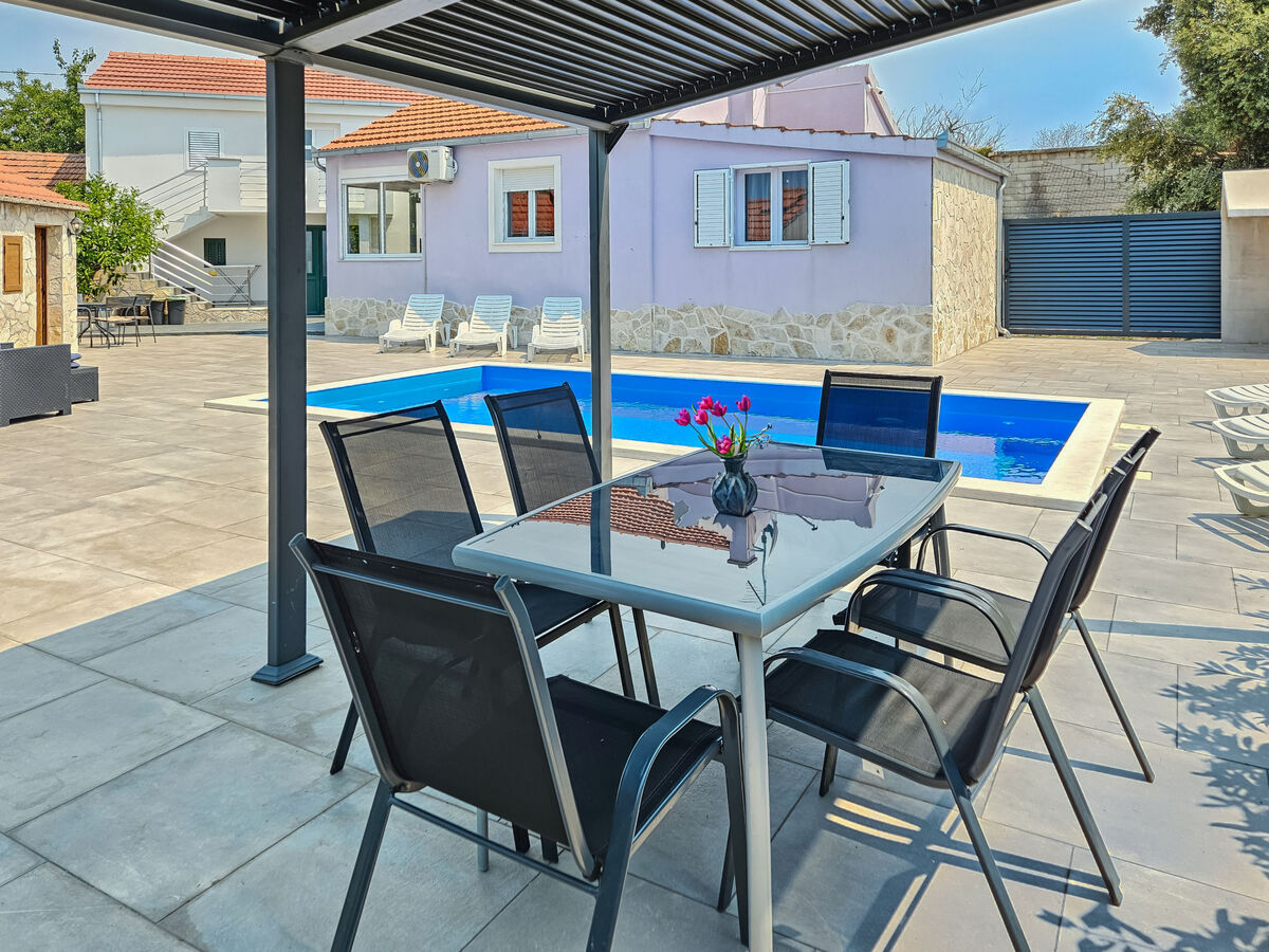 A usage privé: terrain 300 m2 (clôturé), piscine rectangulaire (32 m2, disponibilité saisonnière: 01.Mai.