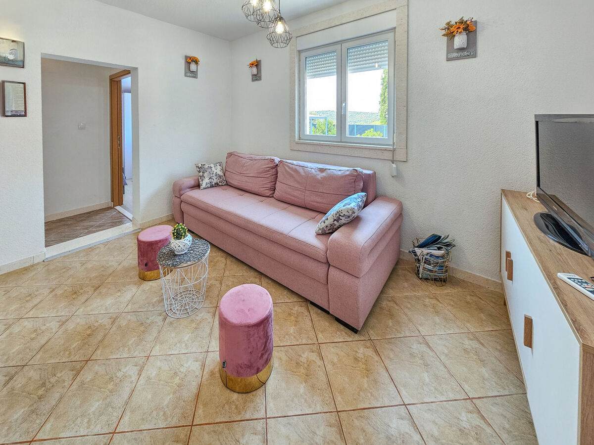 Séjour/salle à manger avec TV (satellite) et air-conditionné.