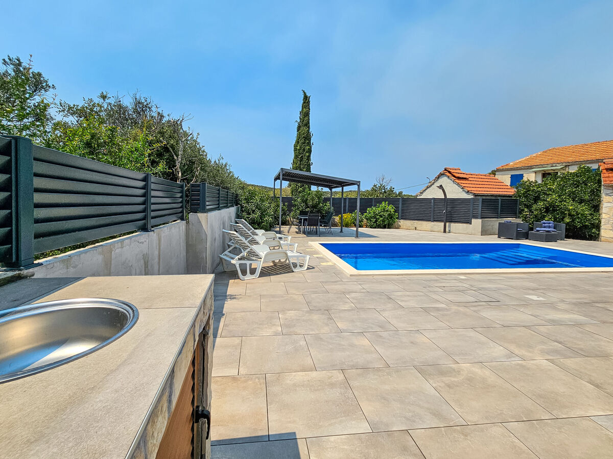 Douche extérieure, terrasse (50 m2), meubles de jardin, espace barbecue, entretien de la piscine par le propriétaire/jardinier.