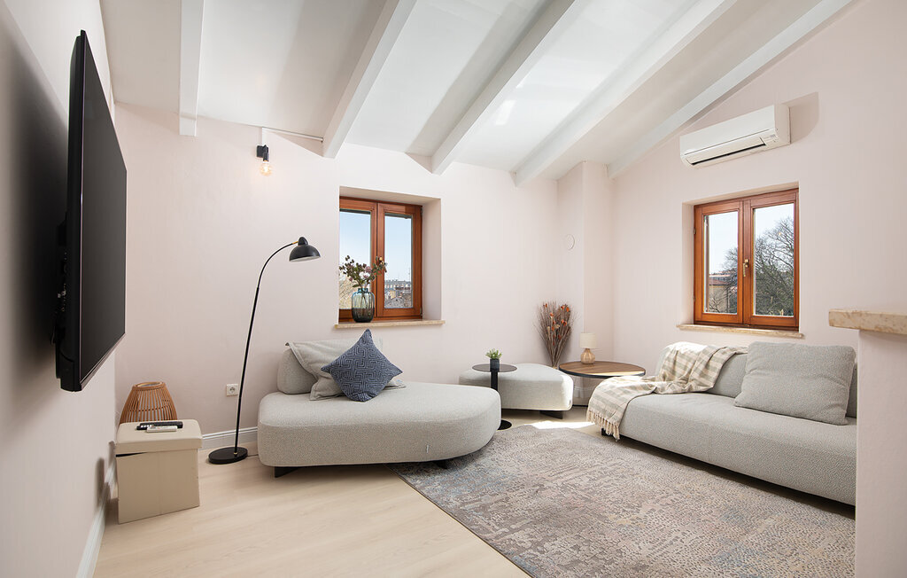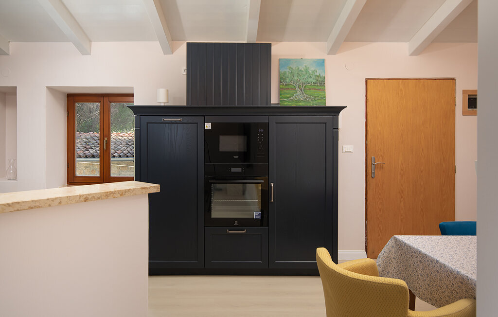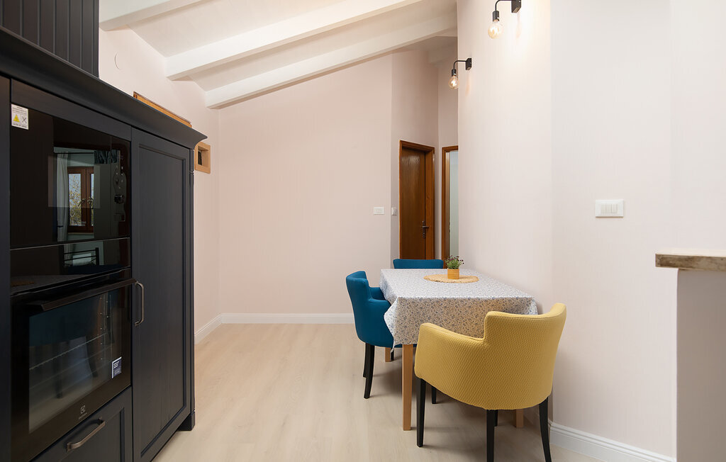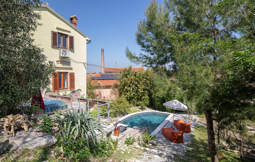 Votre villa en pierre dans la capitale de l'Istrie est l'endroit idéal pour des vacances reposantes. Commencez votre journée par un petit déjeuner sur l'agréable terrasse, entourée de verdure luxuriante et de fleurs colorées. La vue sur les environs pittoresques et la ville historique en arrière-plan crée une atmosphère de vacances paisible. À l'intérieur, un salon aménagé avec goût et des sièges confortables vous attendent, idéal pour des soirées de détente après une journée d'aventure. Profitez de la cuisine bien équipée avec une table à manger pour préparer de délicieux repas.