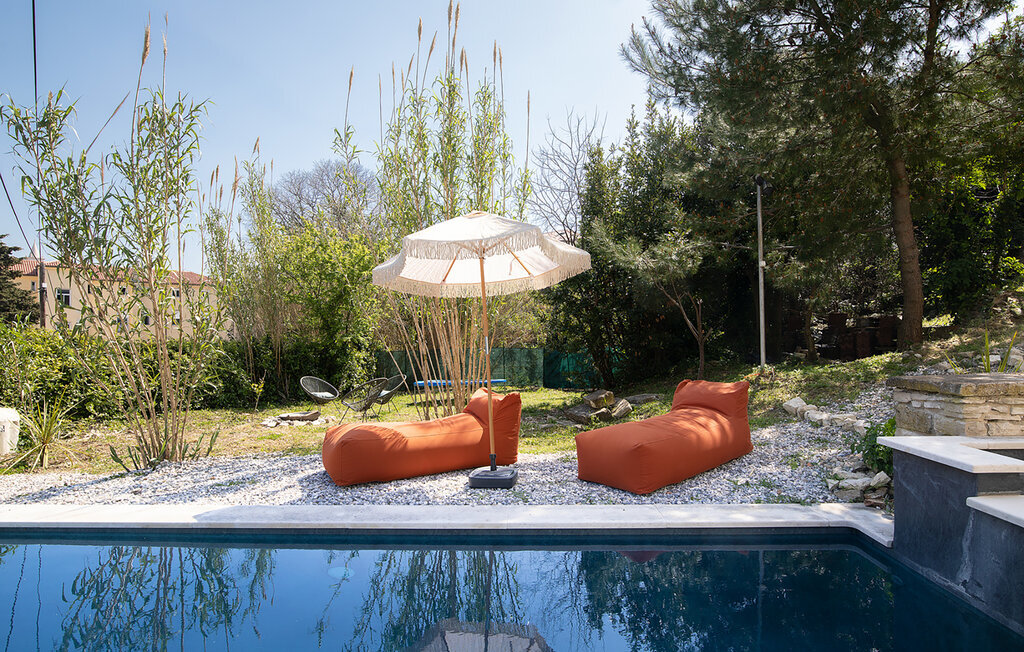Rafraîchissez-vous dans la piscine extérieure et détendez-vous sur les confortables chaises longues. Profitez du calme paisible et laissez votre esprit s'évader. Votre sauna vous apportera une détente supplémentaire et une chaleur agréable.
