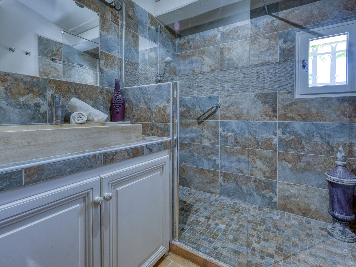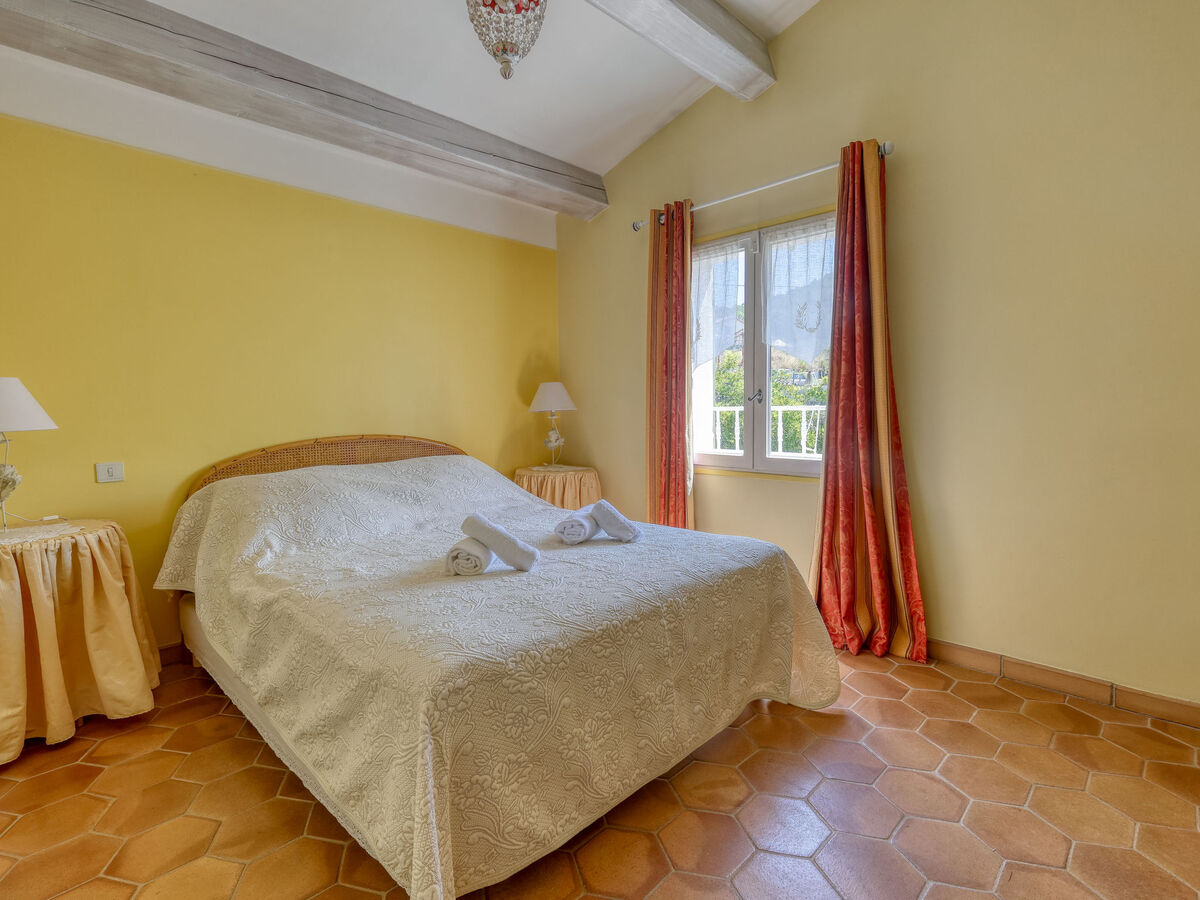 À l'étage supérieur: 1 chambre avec 1 grand-lit (160 cm, longueur 200 cm), douche/WC et air-conditionné.