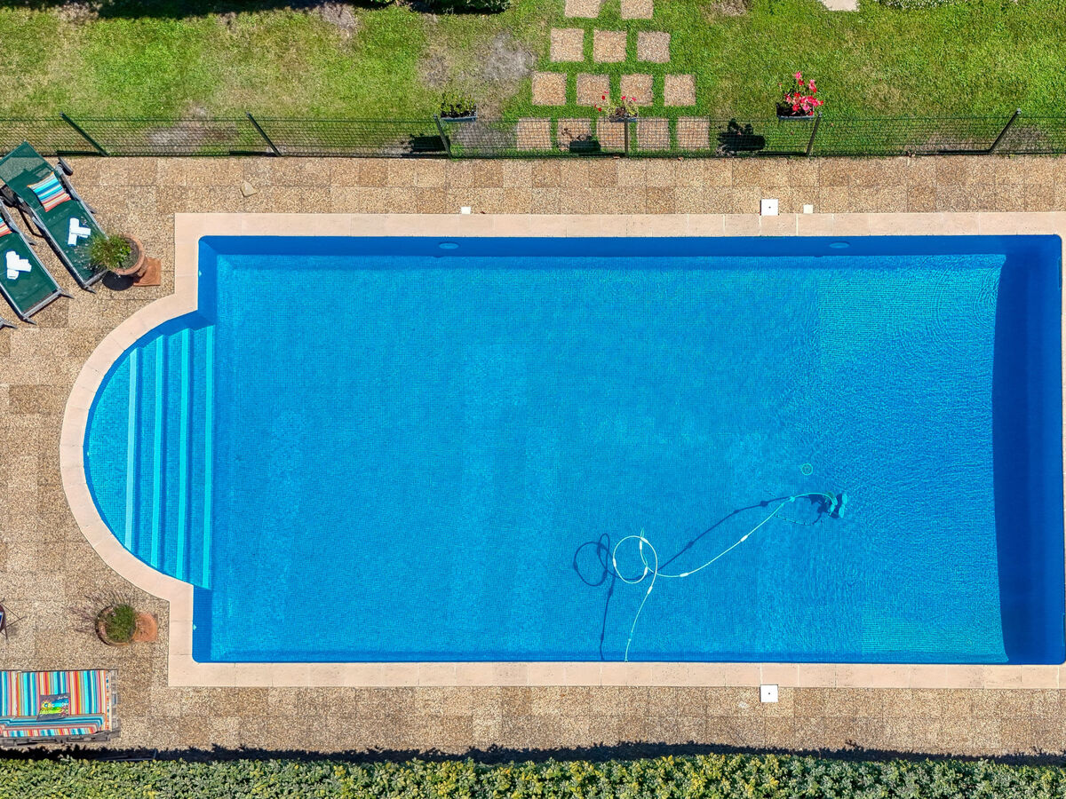 A usage privé: terrain 1'700 m2 (clôturé), piscine rectangulaire (12 x 6 m, disponibilité saisonnière: 03.Mai.
