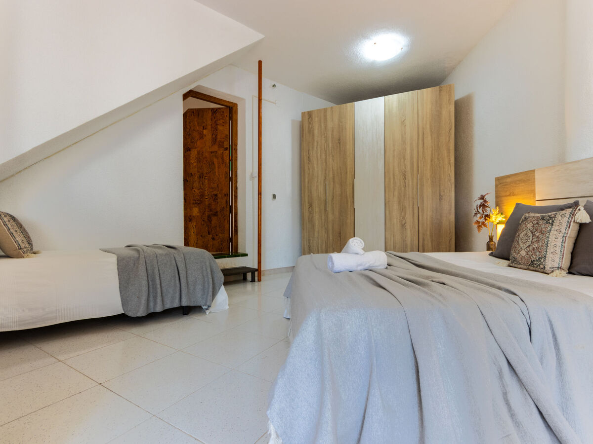 À l'étage supérieur: 1 chambre double avec 2 lits (90 cm, longueur 180 cm).