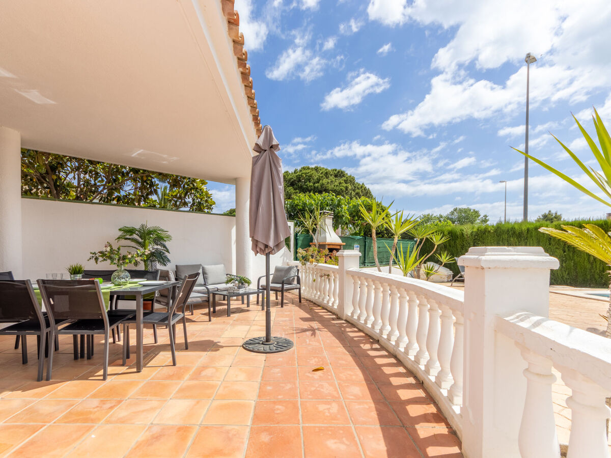 Meubles de terrasse, barbecue, chaises longues, loggia.