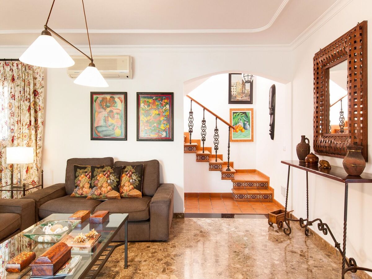 Aménagement très confortable et plaisant: séjour avec table pour les repas, TV et air-conditionné.
