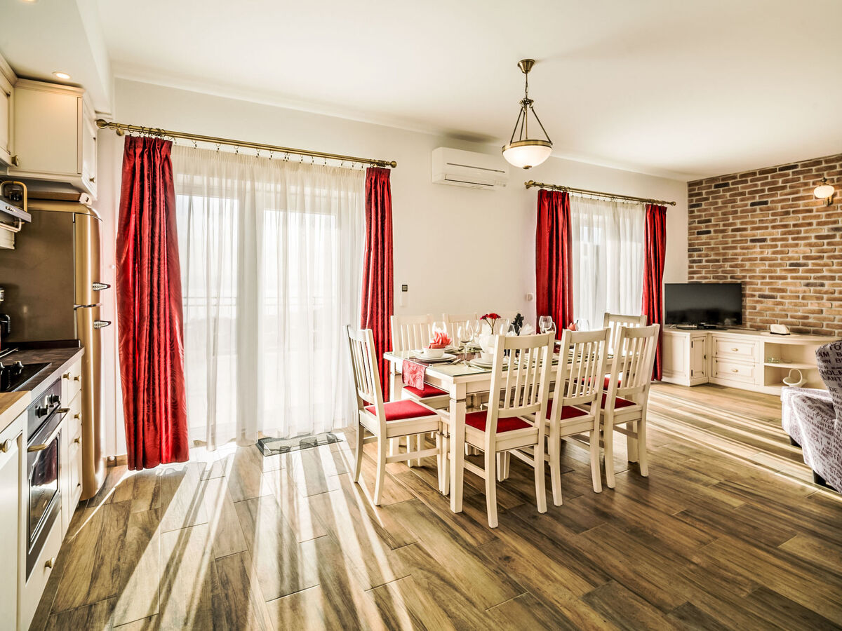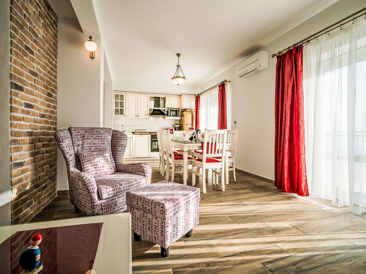 Séjour/salle à manger 35 m2 avec 1 divan-lit double (160 cm, longueur 200 cm), TV (satellite) (écran plat), air-conditionné.