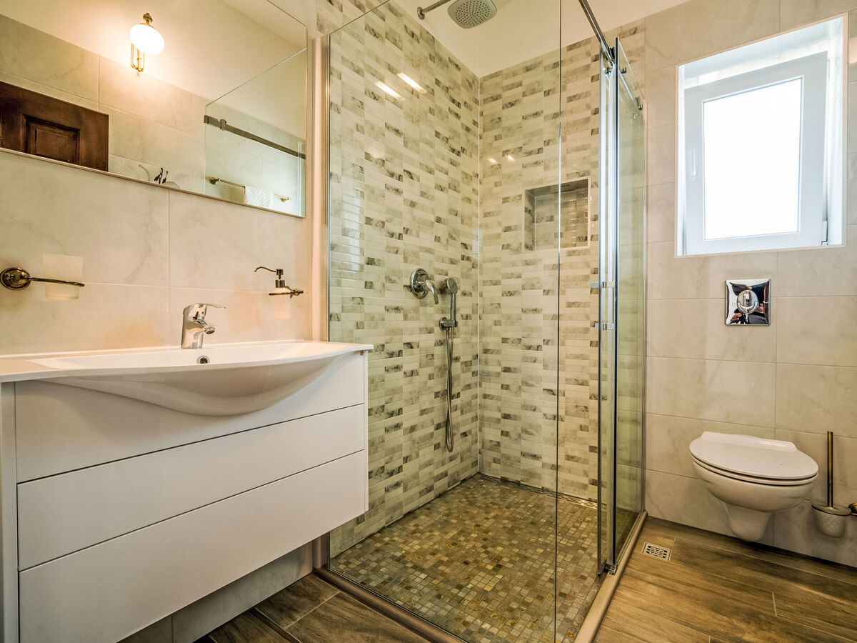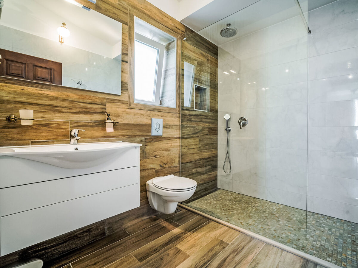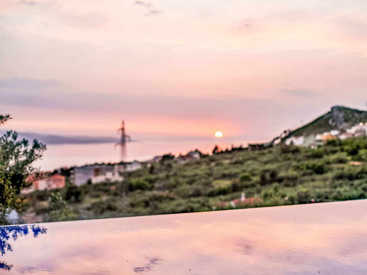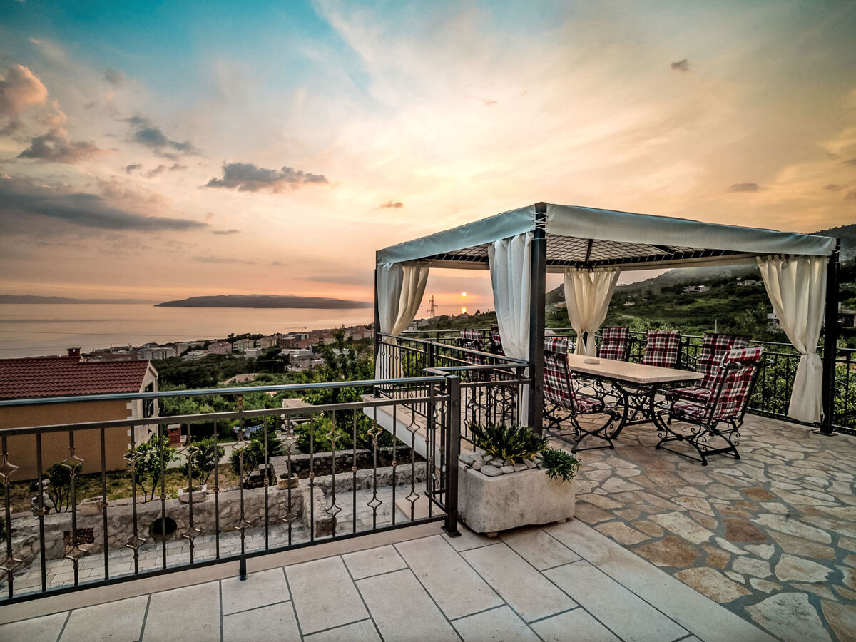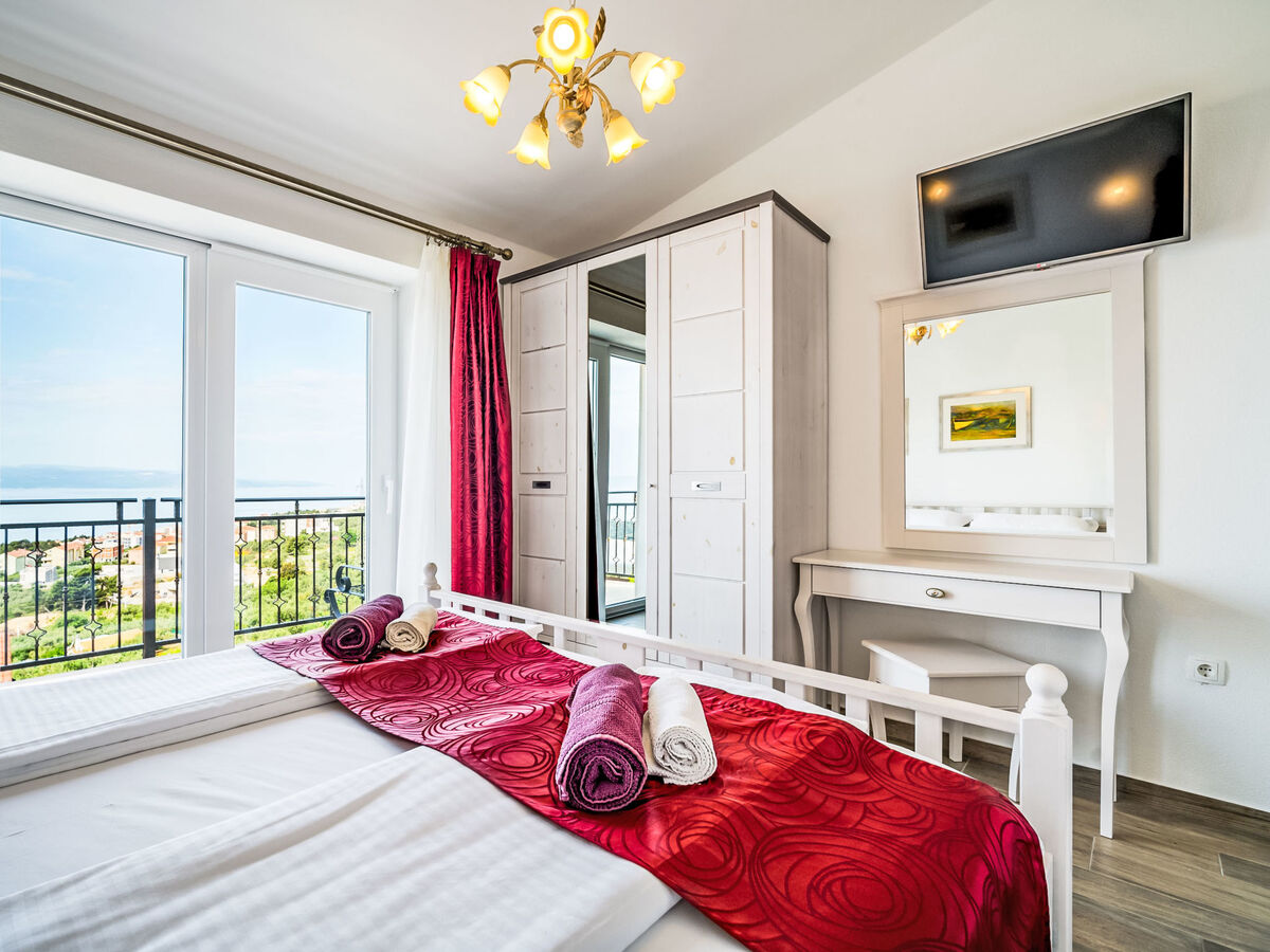 Dans le haut de la station de Makarska, dans le hameau de Puharići, à 1.5 km du centre de Makarska, situation tranquille, ensoleillée sur un versant, à 1.5 km de la mer, à 1.5 km de la plage.