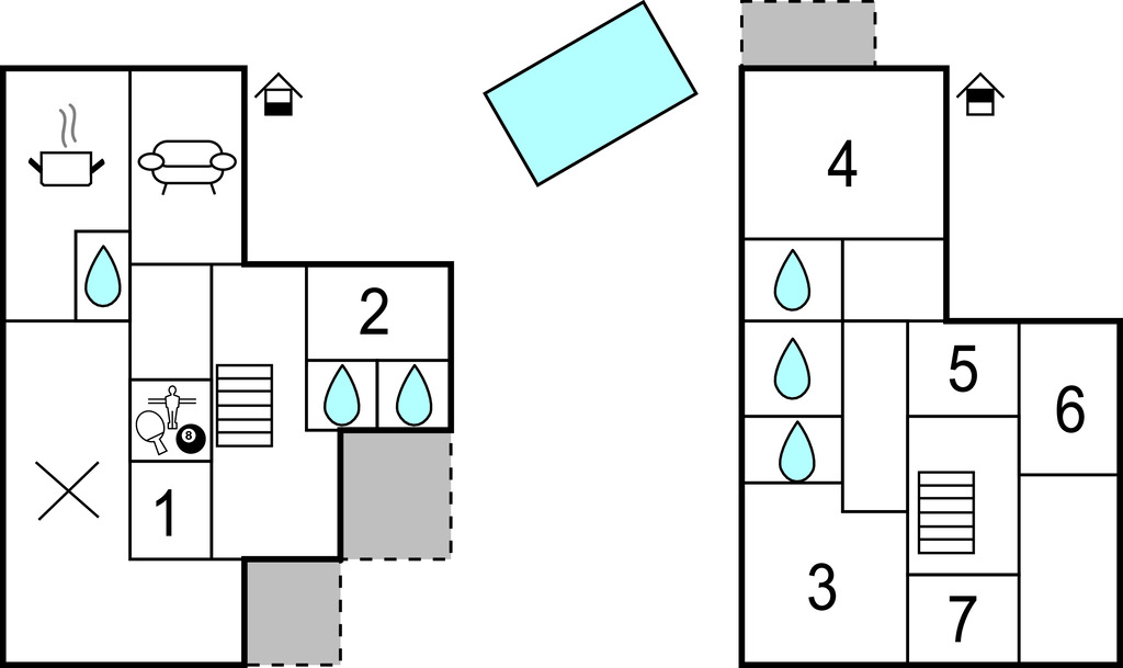 Location de vacances avec activités : Cette location de vacances comprend un ou plusieurs équipements de loisir (ping-pong, billard, baby-foot...)