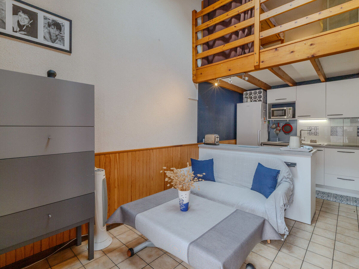 À l'étage supérieur: galerie avec 1 lit (90 cm, longueur 190 cm).