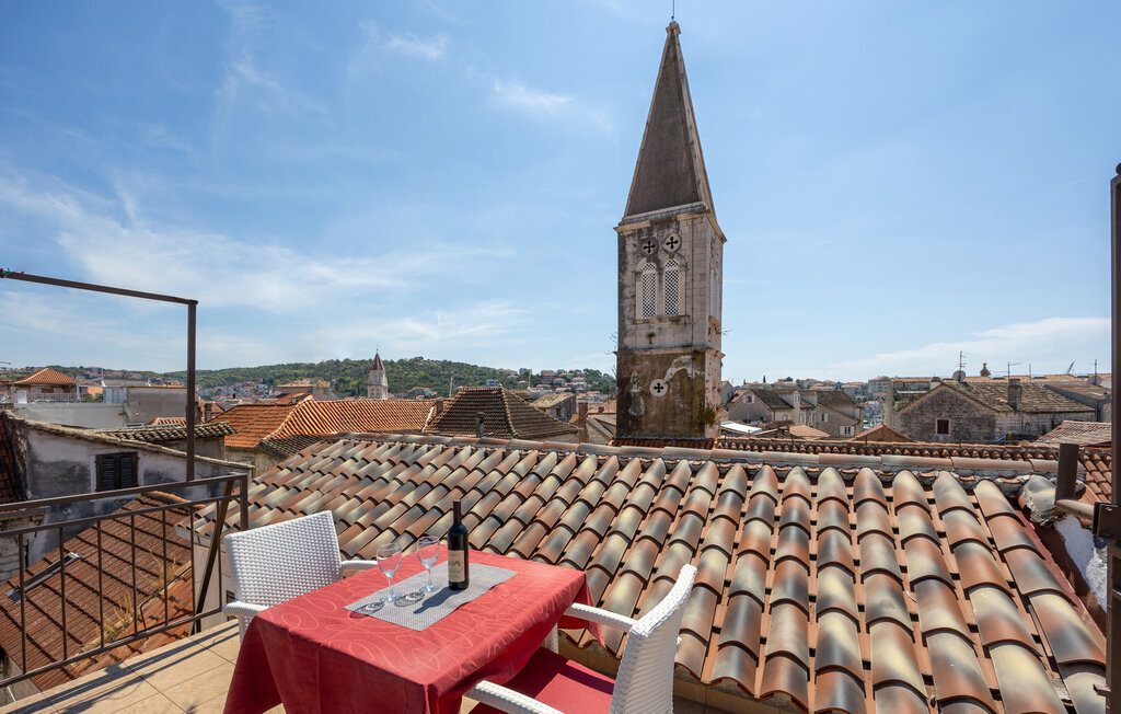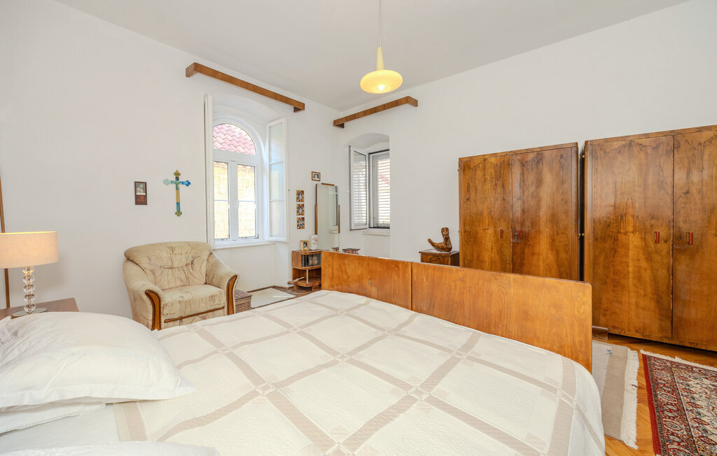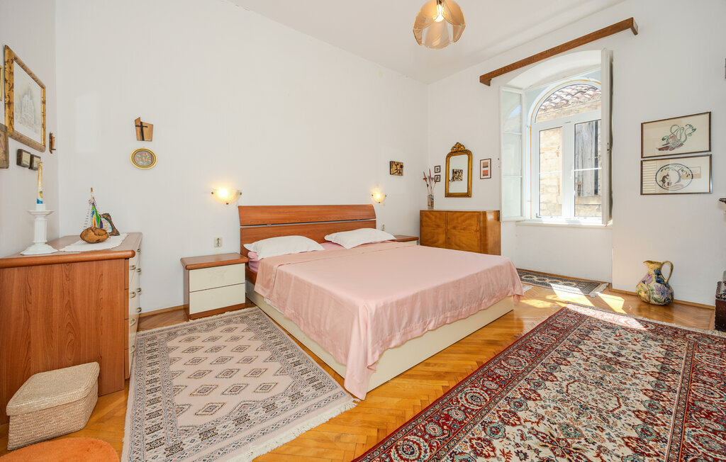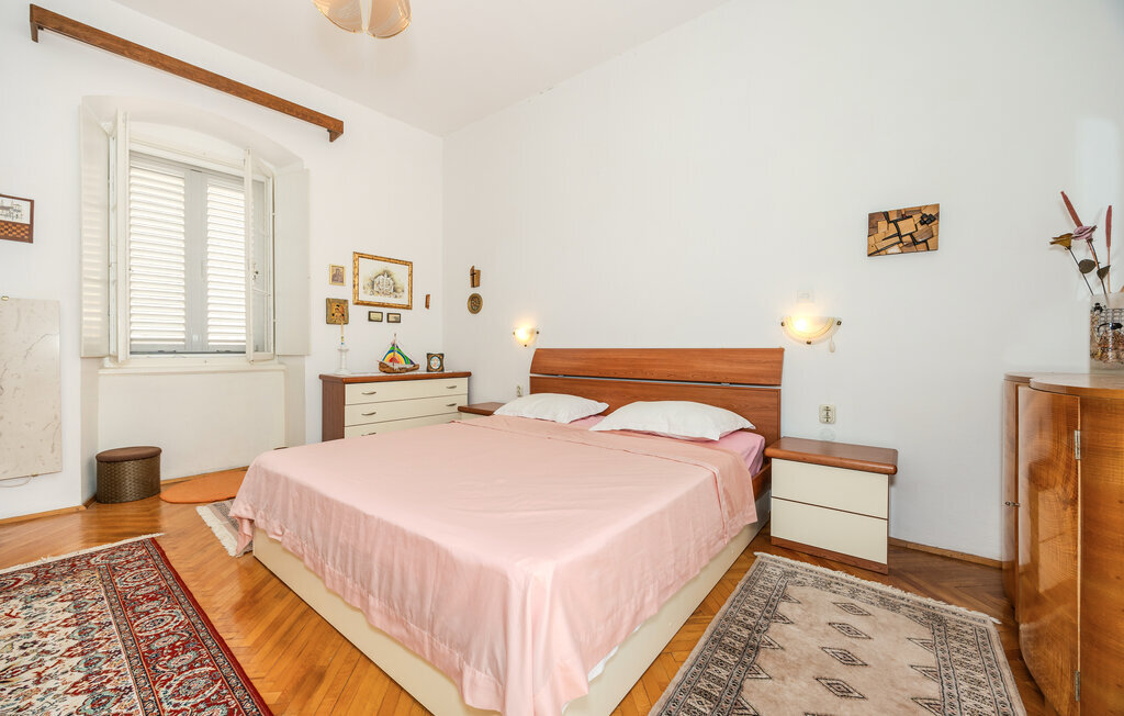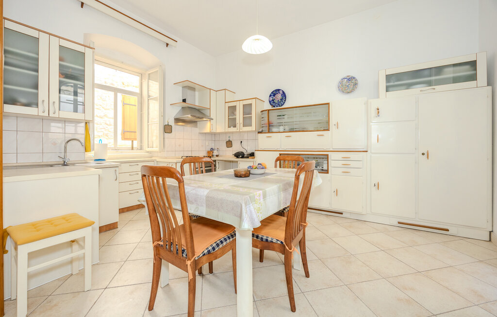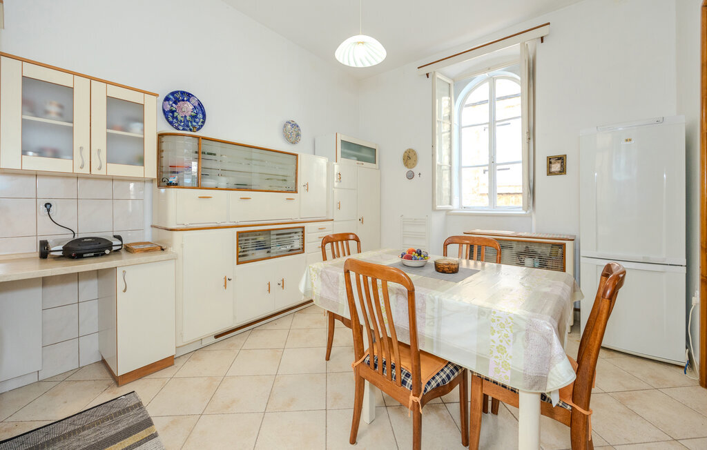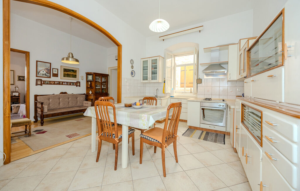 Située au cœur de la charmante ville de Trogir, cette grande maison traditionnelle est parfaitement adaptée à votre grande famille. Les pièces aménagées avec soin sont réparties sur plusieurs étages et créent une atmosphère lumineuse et conviviale qui invite au bien-être. Faites de cette maison votre domicile temporaire et profitez de l'ambiance familiale. L'un des points forts est la terrasse sur le toit, où vous pourrez terminer la journée avec une vue magnifique sur les toits de la vieille ville.