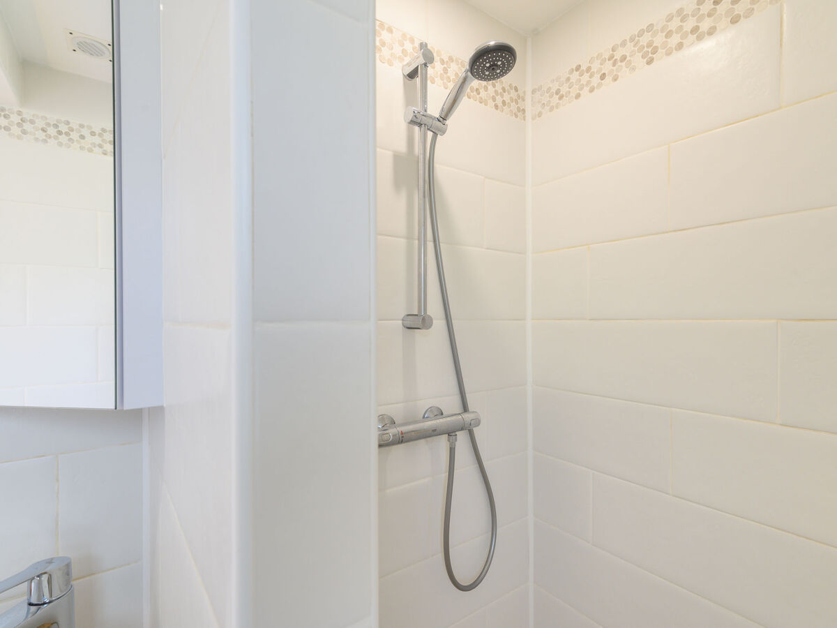 Douche extérieure, place de parking (pour 2 voitures) sur le terrain.
