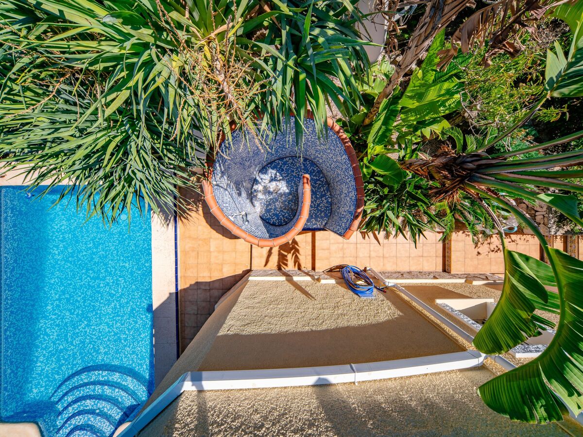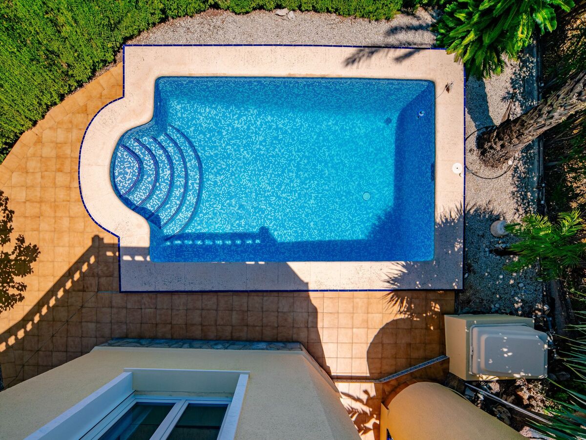 A usage privé: grand, beau jardin sur plusieurs niveaux entretenu, piscine rectangulaire (6 x 4 m, profondeur 120 - 170 cm, disponibilité saisonnière: 01.Jan.