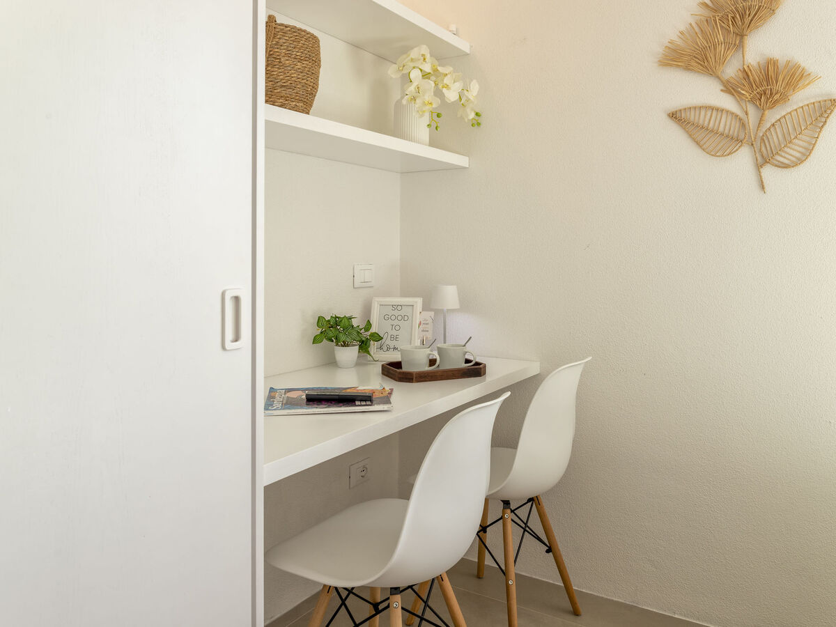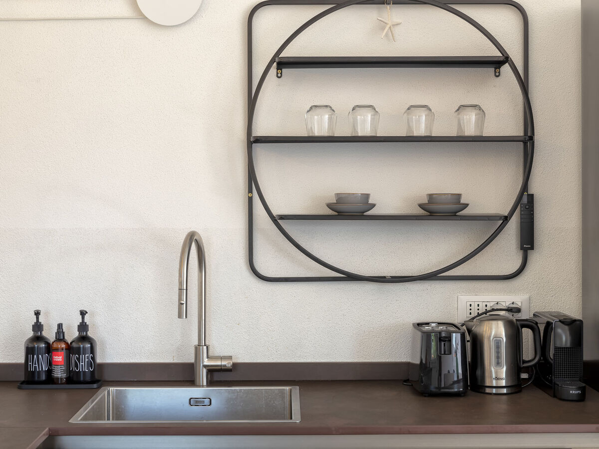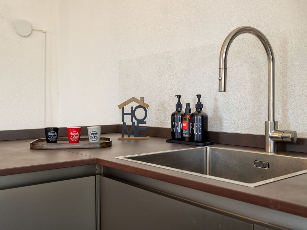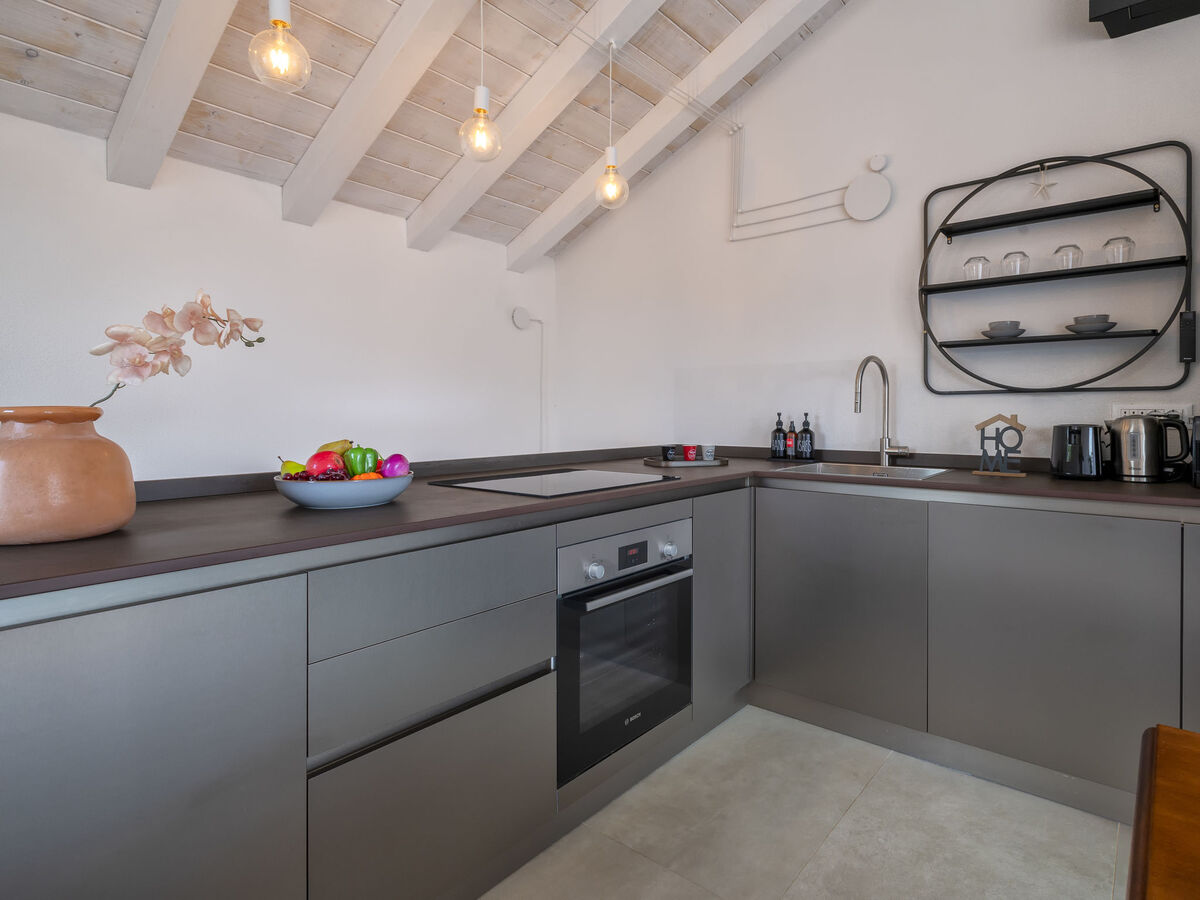 Mansardée coin cuisine (four, lave-vaisselle, 4 plaques vitrocéramiques, grille-pain, bouilloire électrique, micro-ondes, cafetière électrique).