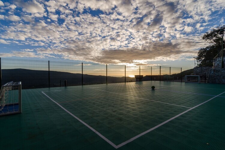 This air conditioned four bedroom villa with terrace and sea view features free WiFi, spacious living room with SAT TV, fully equipped kitchen with dining area and four private bathrooms. On the outdoor it offers private outdoor swimming pool (children's pool is situated within the outdoor swimming pool) fitted with sunbeds and parasols, roofed furnished terrace, sauna, Jacuzzi with panoramic view, ping pong table, kids playground, volleyball court, outdoor bathroom and outdoor BBQ.