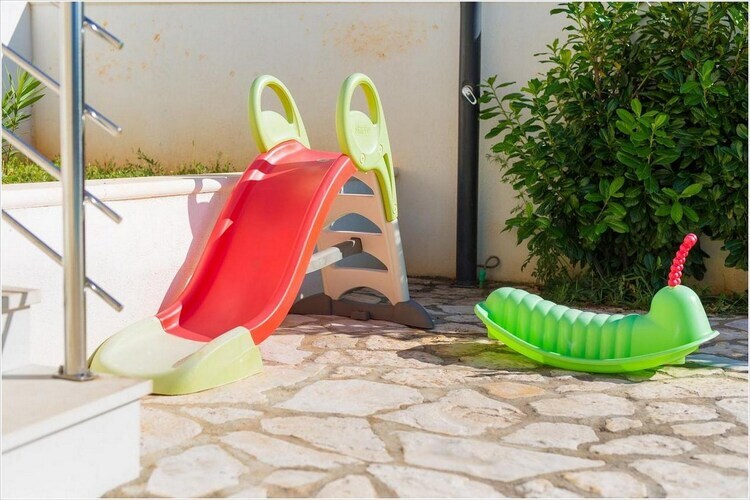 Spacious terrace fitted with sun beds and parasols as well as seasonal outdoor swimming pool are at your disposal, which makes this place ideal for a nice and relaxing family or friends vacation.