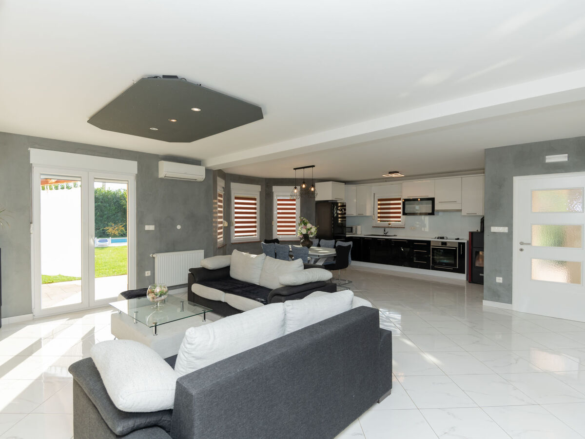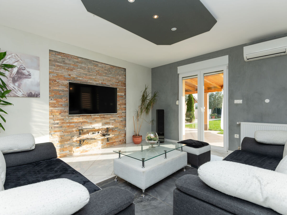 Séjour/salle à manger avec TV (satellite) (écran plat), air-conditionné.