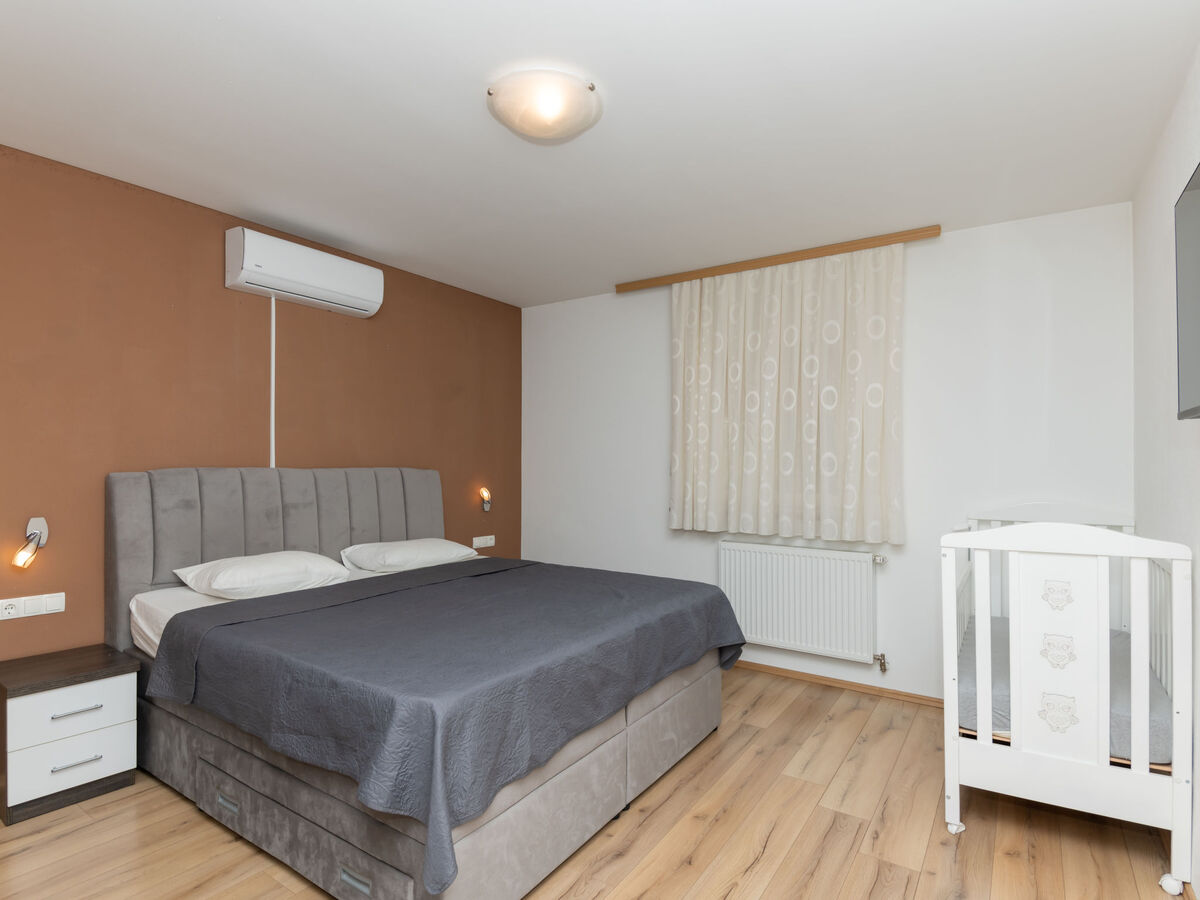 1 chambre avec 1 grand-lit (180 cm, longueur 200 cm), air-conditionné.