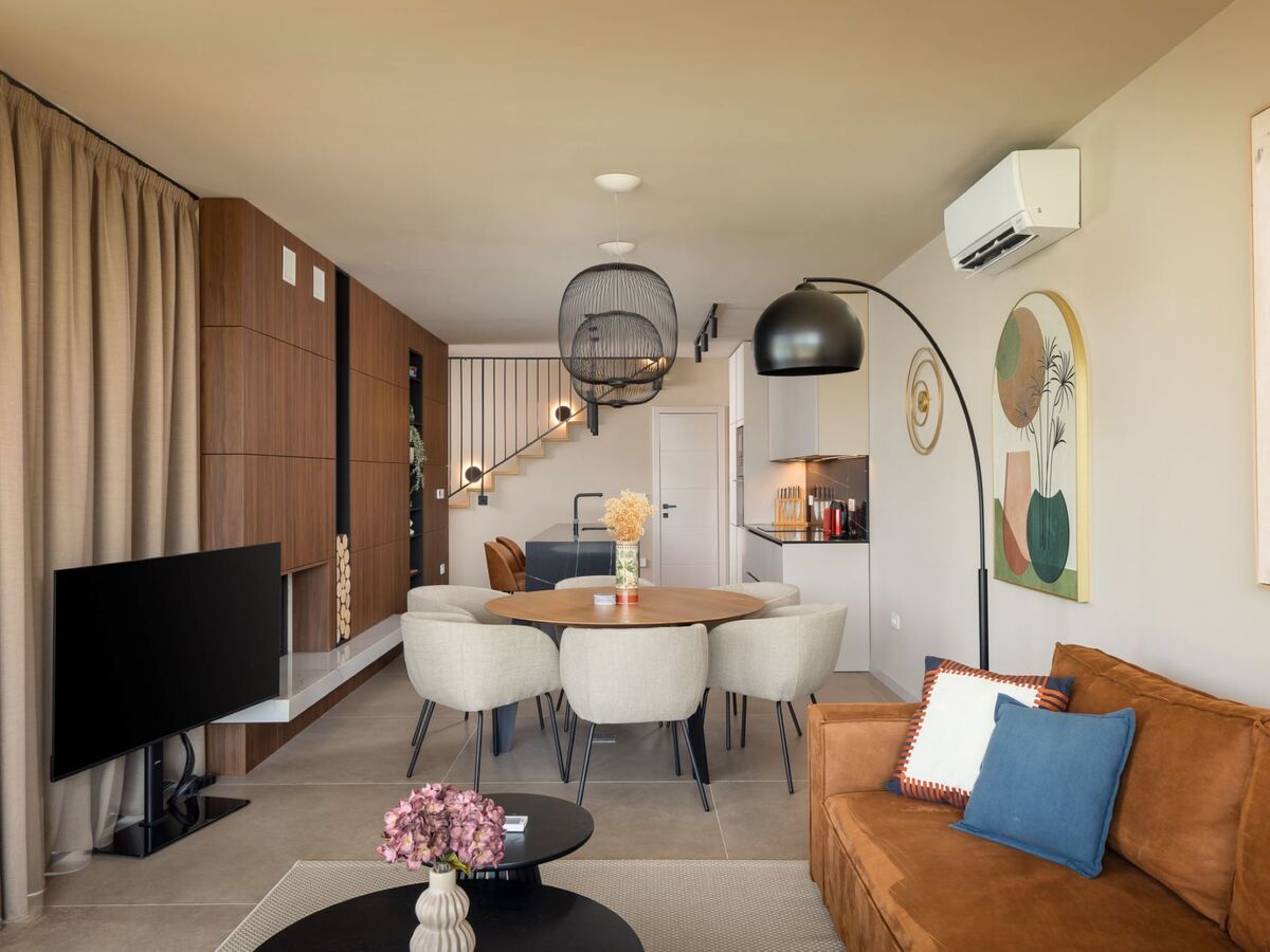 Aménagement moderne et de bon goût: séjour/salle à manger avec TV (satellite) (écran plat), air-conditionné.