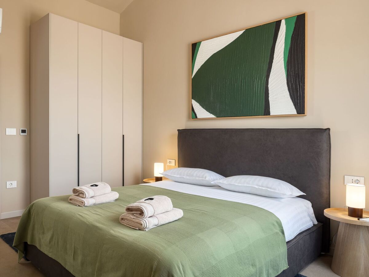 1 chambre avec 1 grand-lit (160 cm, longueur 200 cm), TV (satellite) (écran plat), air-conditionné.