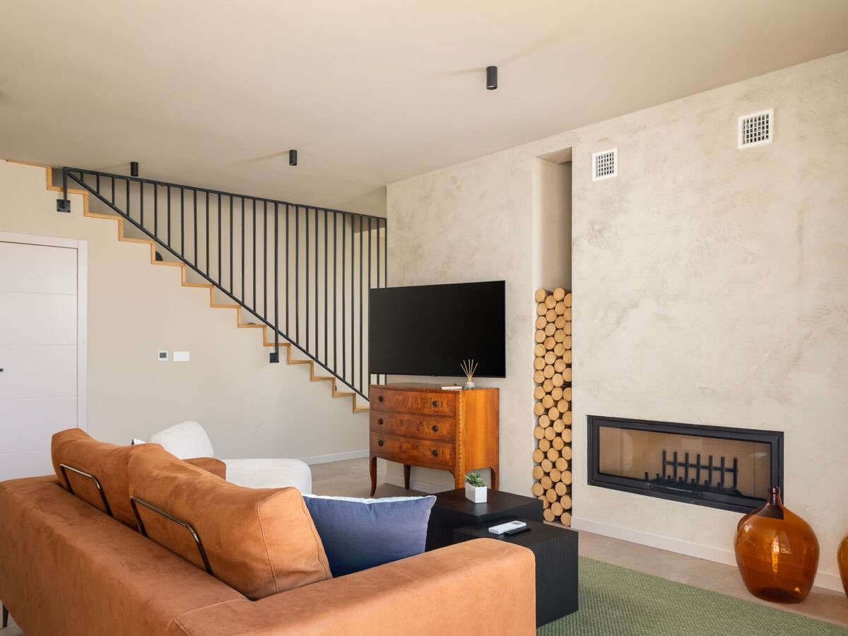 À l'étage supérieur: 1 chambre avec 1 grand-lit (160 cm, longueur 200 cm), douche/WC et TV (satellite) (écran plat), air-conditionné.