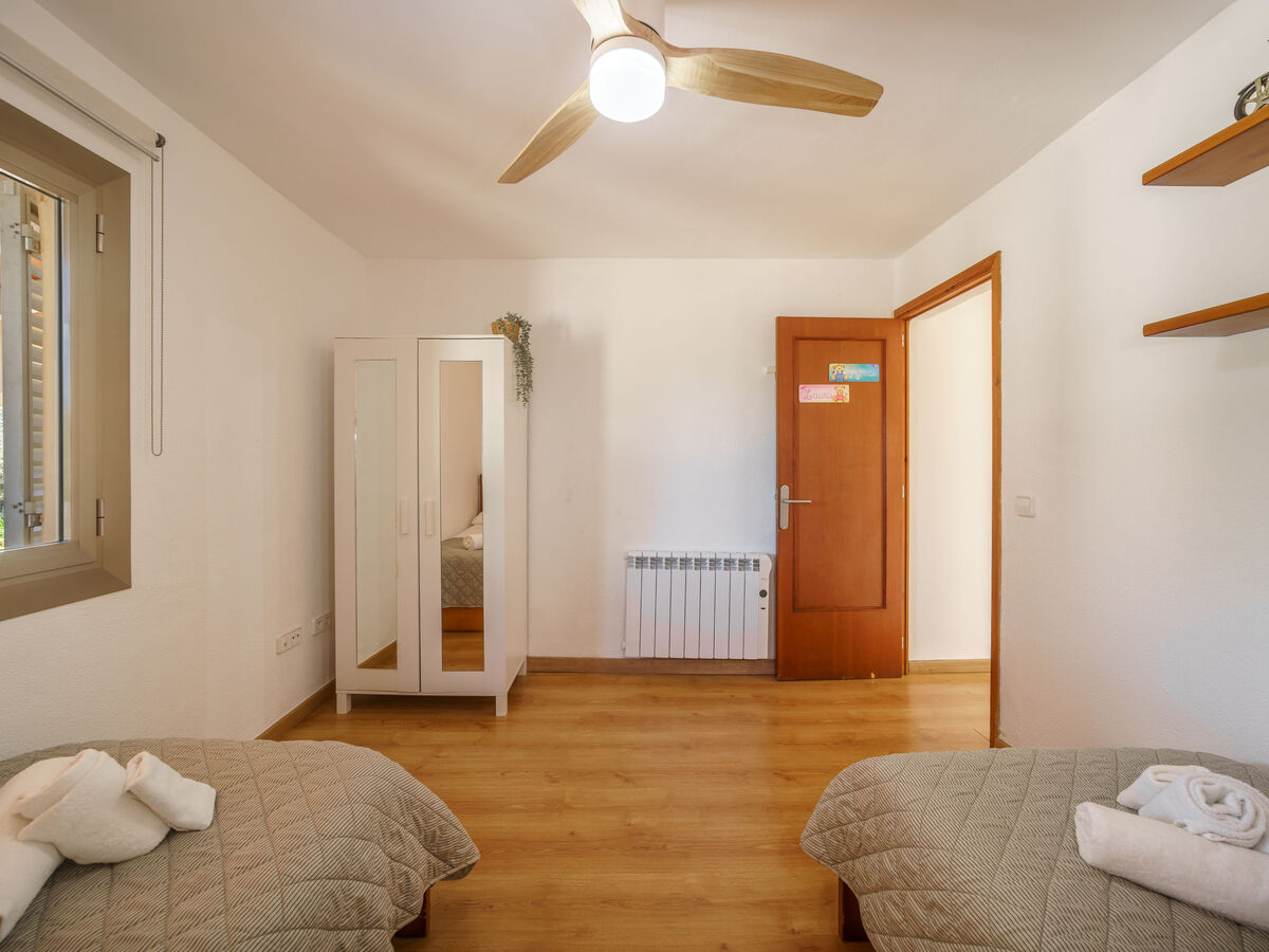 1 grande chambre double avec 2 lits (90 cm, longueur 190 cm), chauffage électrique et ventilateur.