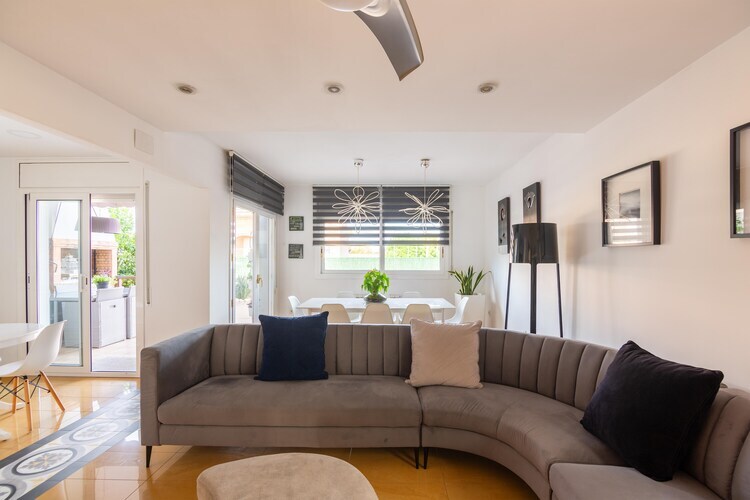 Bienvenue dans votre escapade idéale à Vilanova i la Geltrú ! Cette maison de vacances magnifiquement conçue s'étend sur deux étages, offrant un mélange de confort et de commodité pour un séjour inoubliable. En entrant, vous êtes accueilli par une cuisine lumineuse et accueillante qui s'ouvre sur un salon et une salle à manger spacieux. Détendez-vous dans le coin salon tout en regardant la télévision ou en vous réunissant autour de la table à manger pour des repas mémorables. Le rez-de-chaussée comprend une chambre confortable et une salle de bain bien équipée, ainsi que des installations de chauffage efficaces pour assurer votre confort toute l'année.