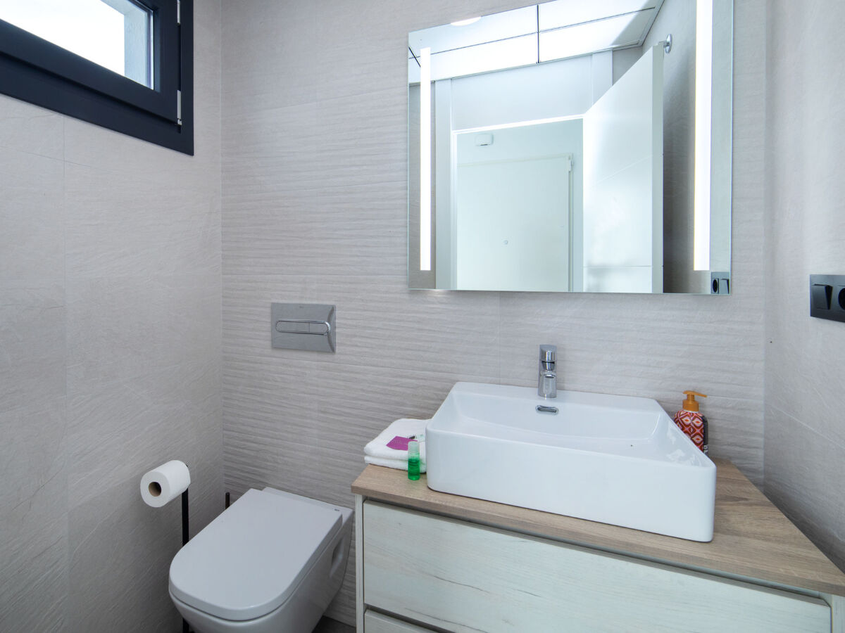 8 m2, 1 chambre avec 1 grand-lit (150 cm, longueur 190 cm), douche/WC, air-conditionné et chauffage à air chaud.