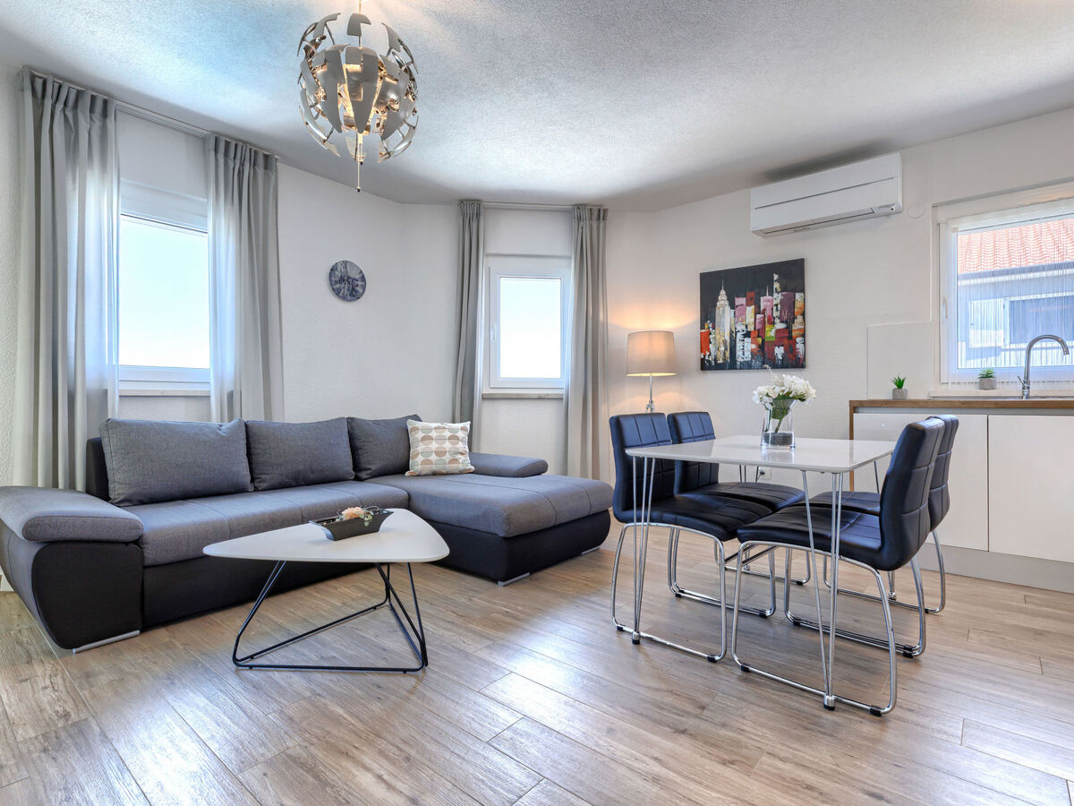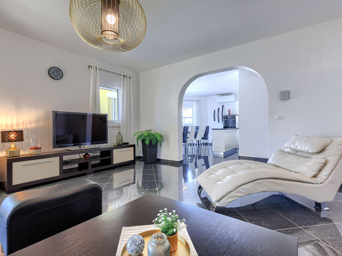 Séjour/salle à manger avec TV (satellite) (écran plat), air-conditionné.