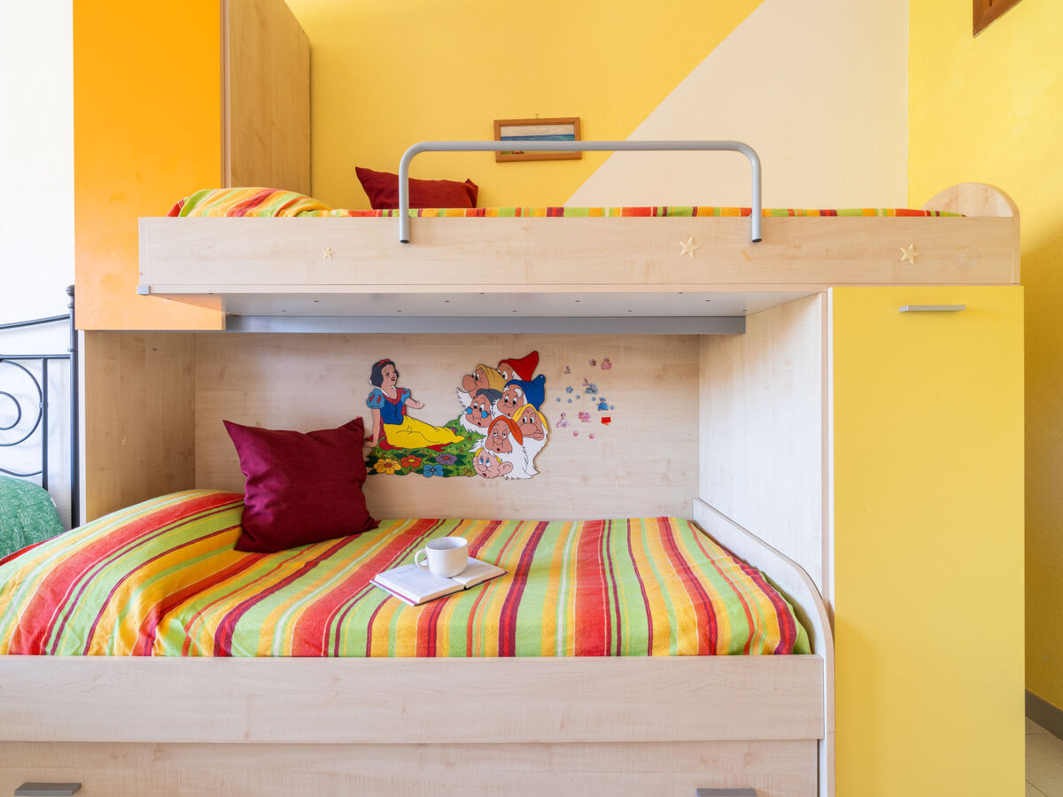 À l'étage supérieur: 1 chambre double avec 1 x 2 lits superposés, 1 lit double et air-conditionné.