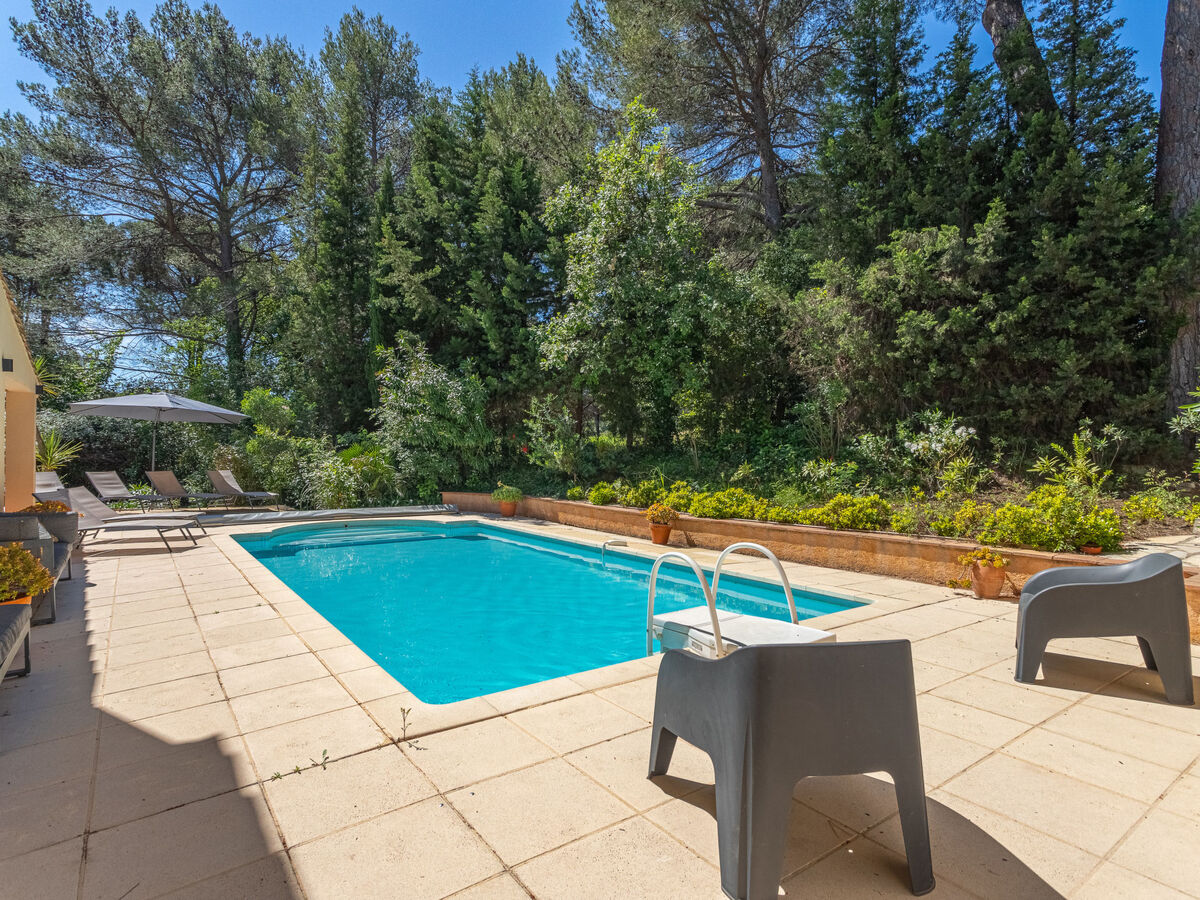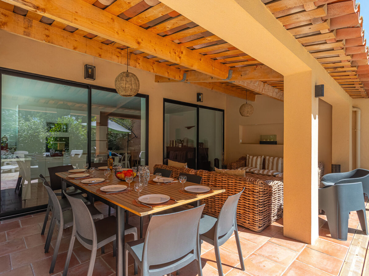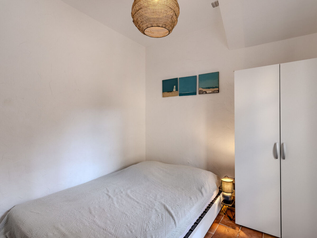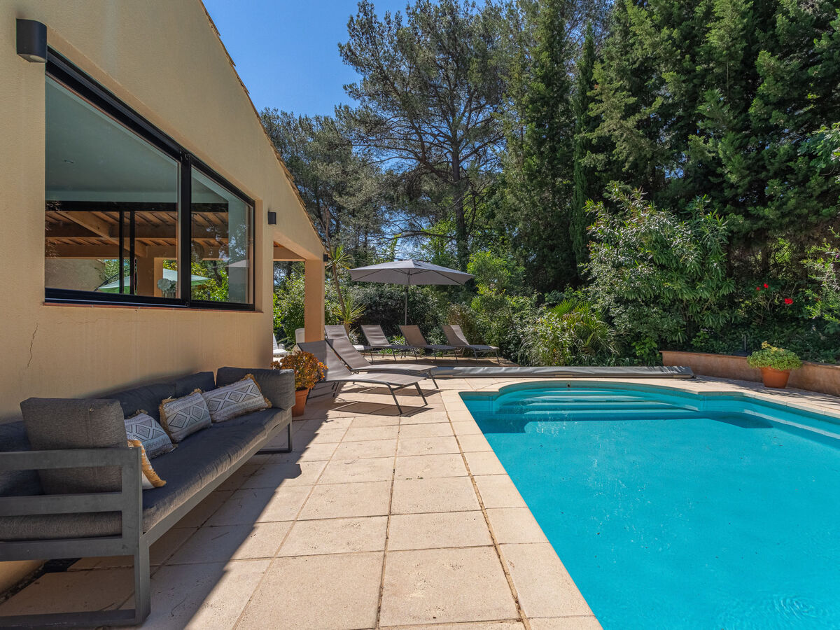 Location composée d'un bâtiment principal et d'une annexe en-dehors de la localité, à 4 km du centre de Cogolin, à 2 km de la mer, dans la verdure.