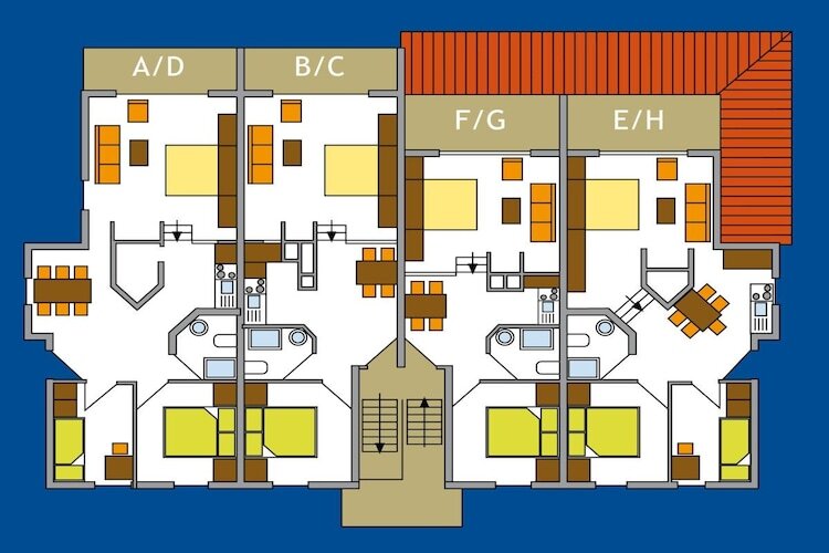 Rez-de-chaussée: (cuisine ouverte(, coin cuisine, table, foyer, bouilloire, plaque de cuisson, cafetière/percolateur, micro ondes, réfrigérateur, congélateur), living/chambre à coucher(, , , , , , TV, cheminée, climatisation), chambre(, , lit double, lit double, climatisation), chambre d'enfant(, , Lit superposé, Lit superposé), salle de bains(, , WC, douche, lavabo, sèche-cheveux)) , sèche-linge, lave-linge , terrasse(, mobilier de jardin, transats), vélos disponibles, séchoir, stationnement (payant)