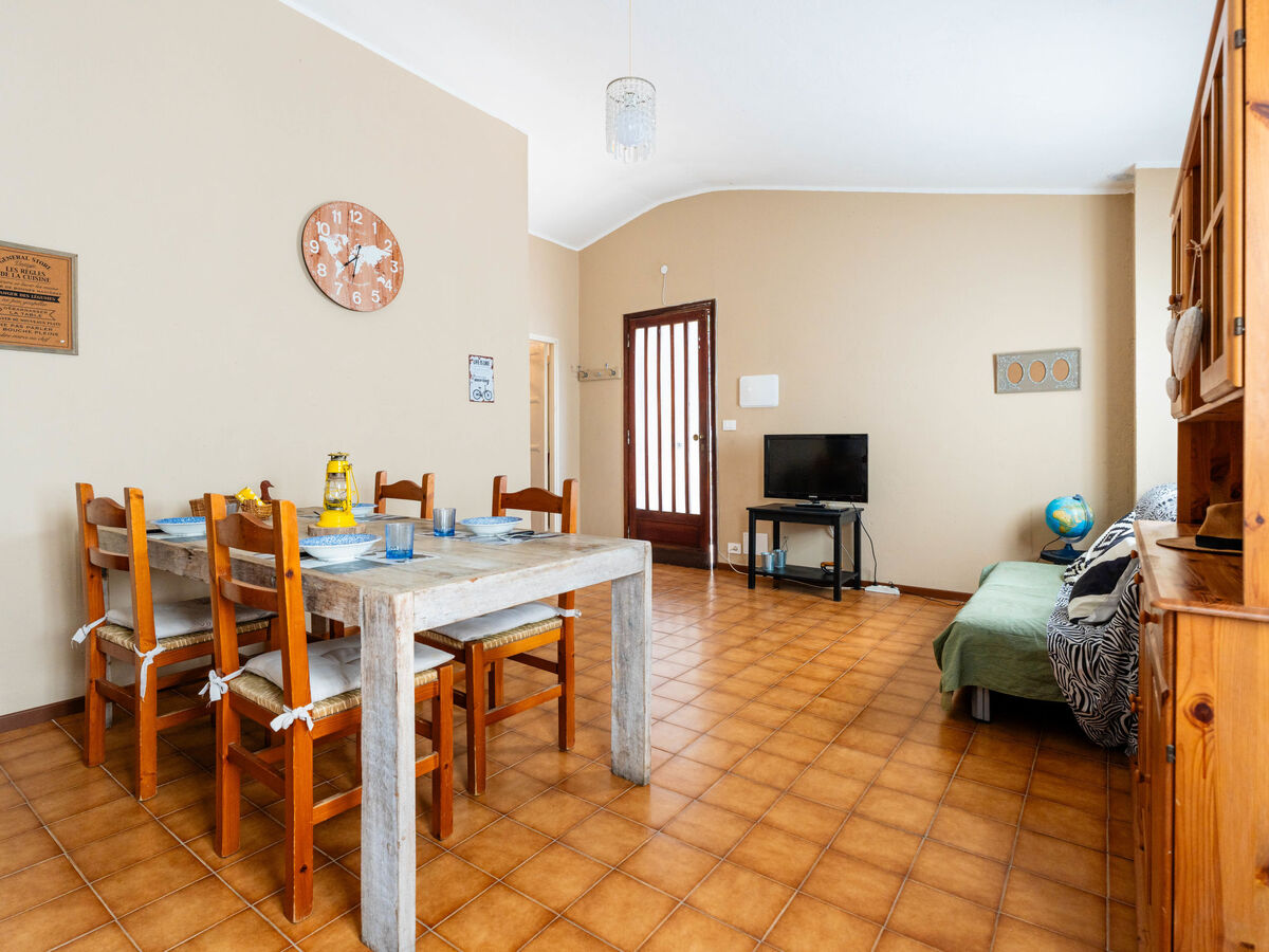 Aménagement fonctionnel et plaisant: séjour/salle à manger avec 1 divan-lit double (140 cm, longueur 200 cm), TV.