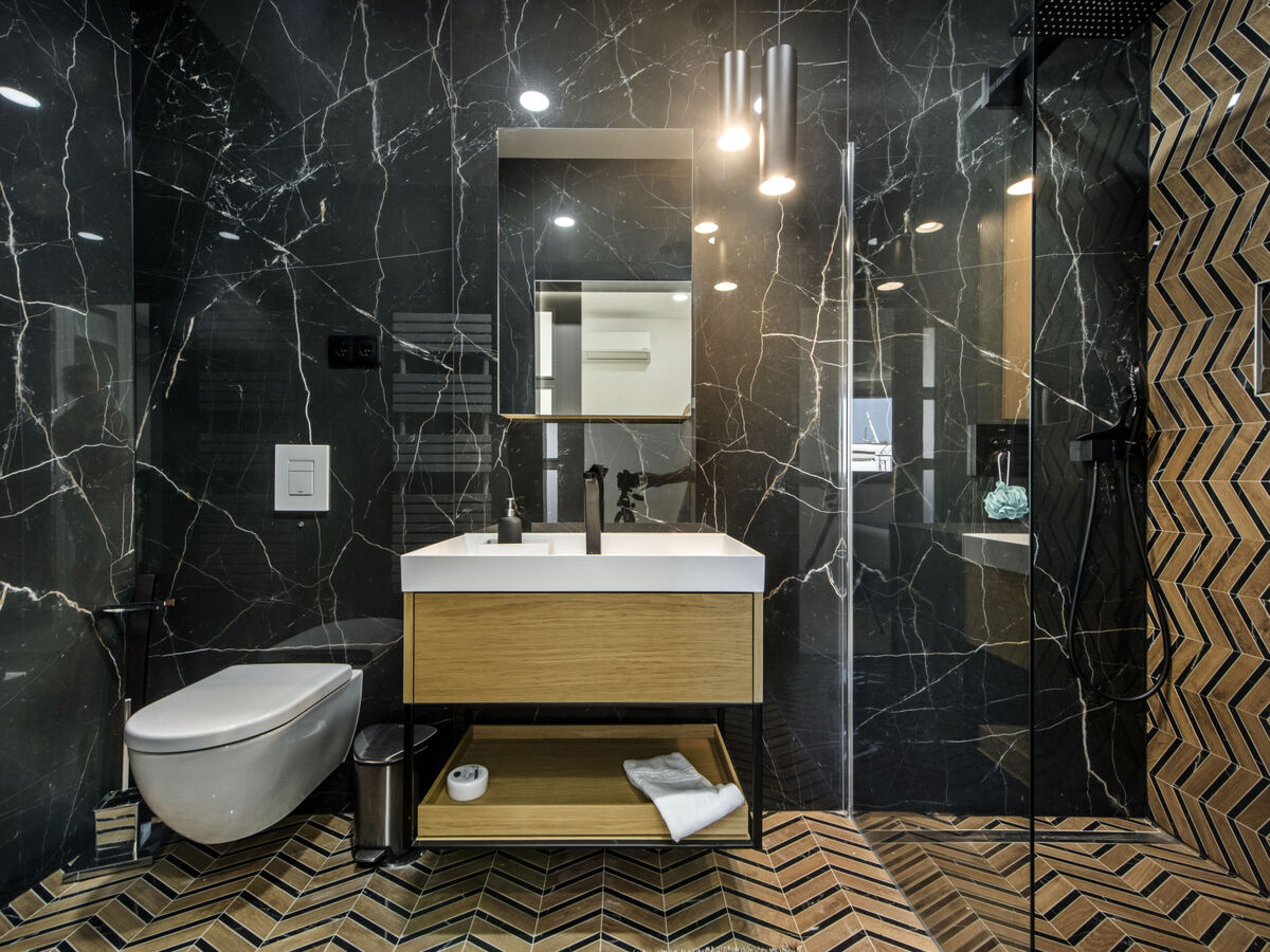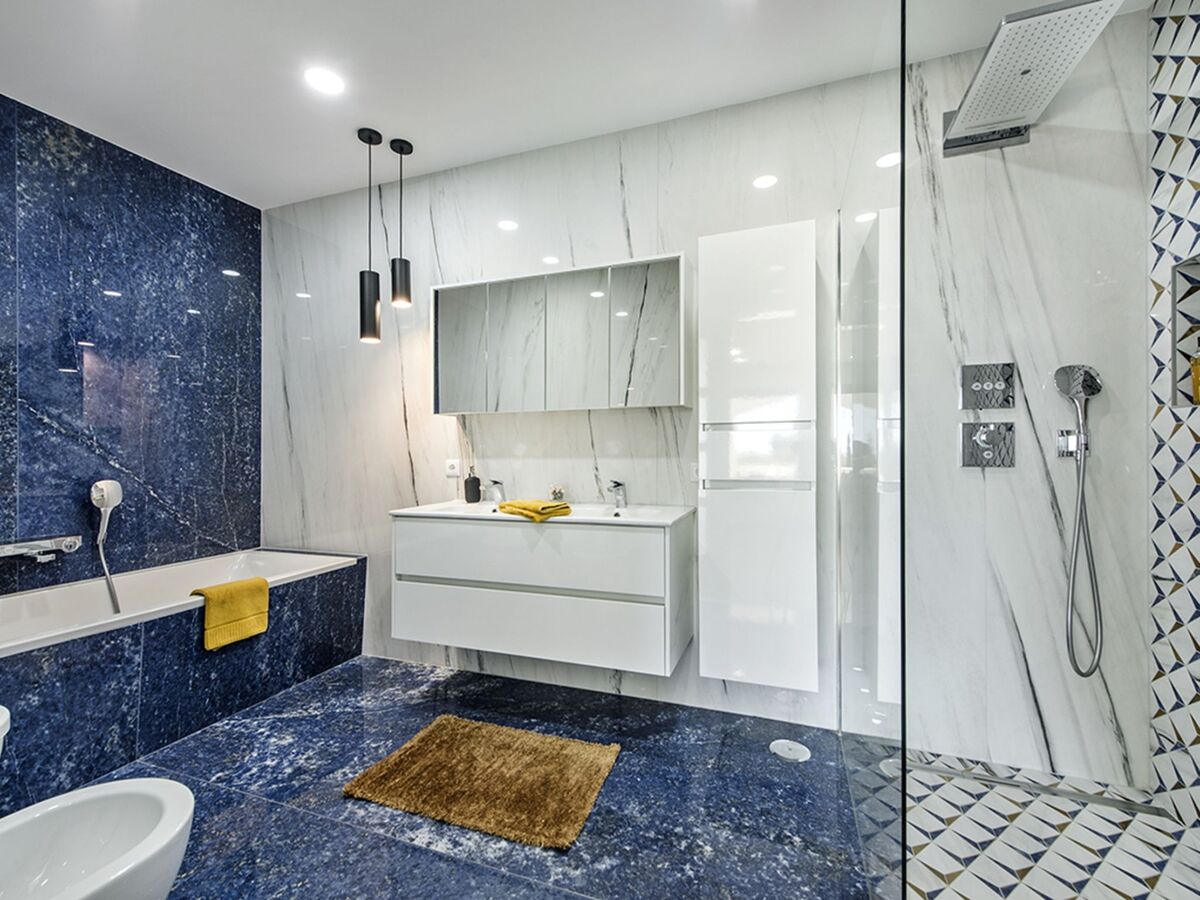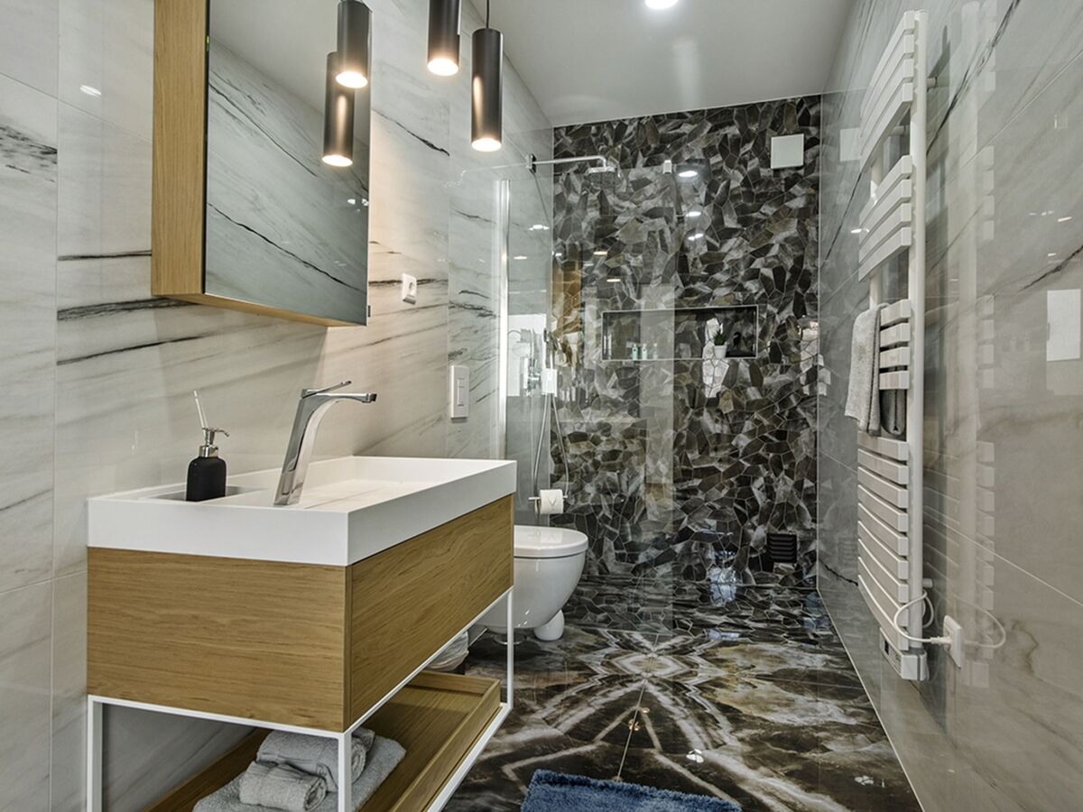 2 chambres, chaque chambre avec: 1 grand-lit (140 cm, longueur 200 cm), douche/WC, air-conditionné et chauffage à air chaud.