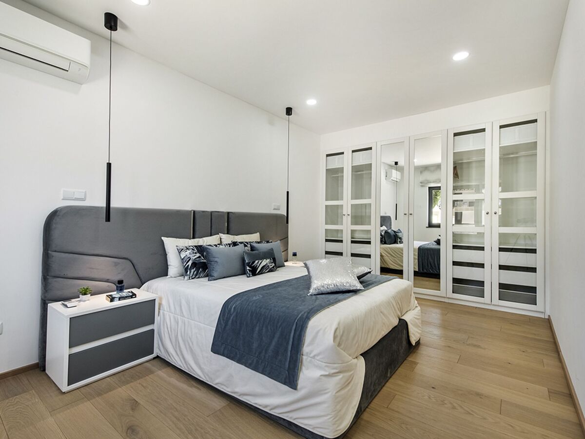 1 chambre avec 1 grand-lit (140 cm, longueur 200 cm), douche/WC, air-conditionné et chauffage à air chaud.